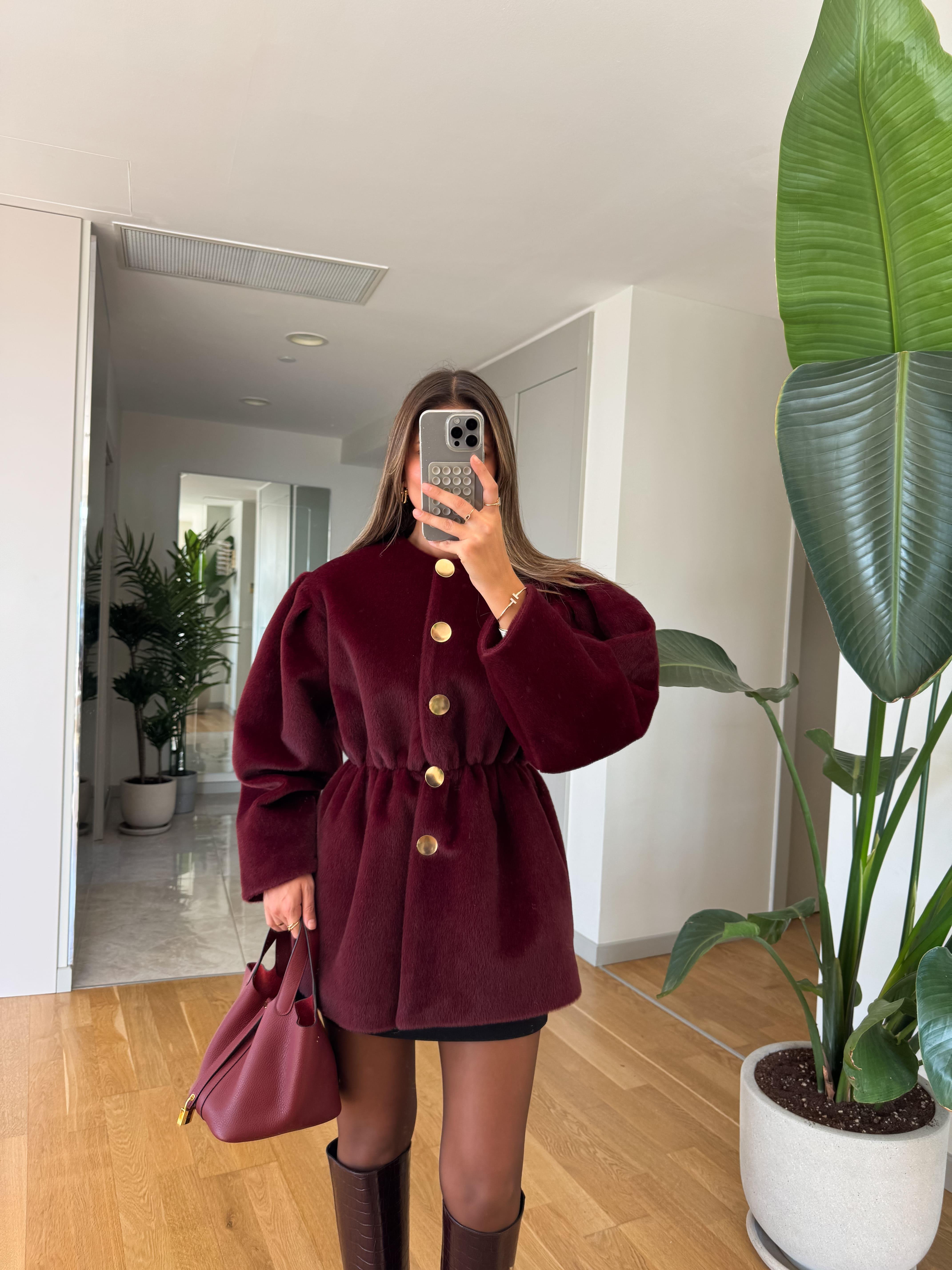 Alpaka Balon Kol Düğmeli Ceket - Bordo (LPK-BLN-KL-DGML-CKT-BRD)