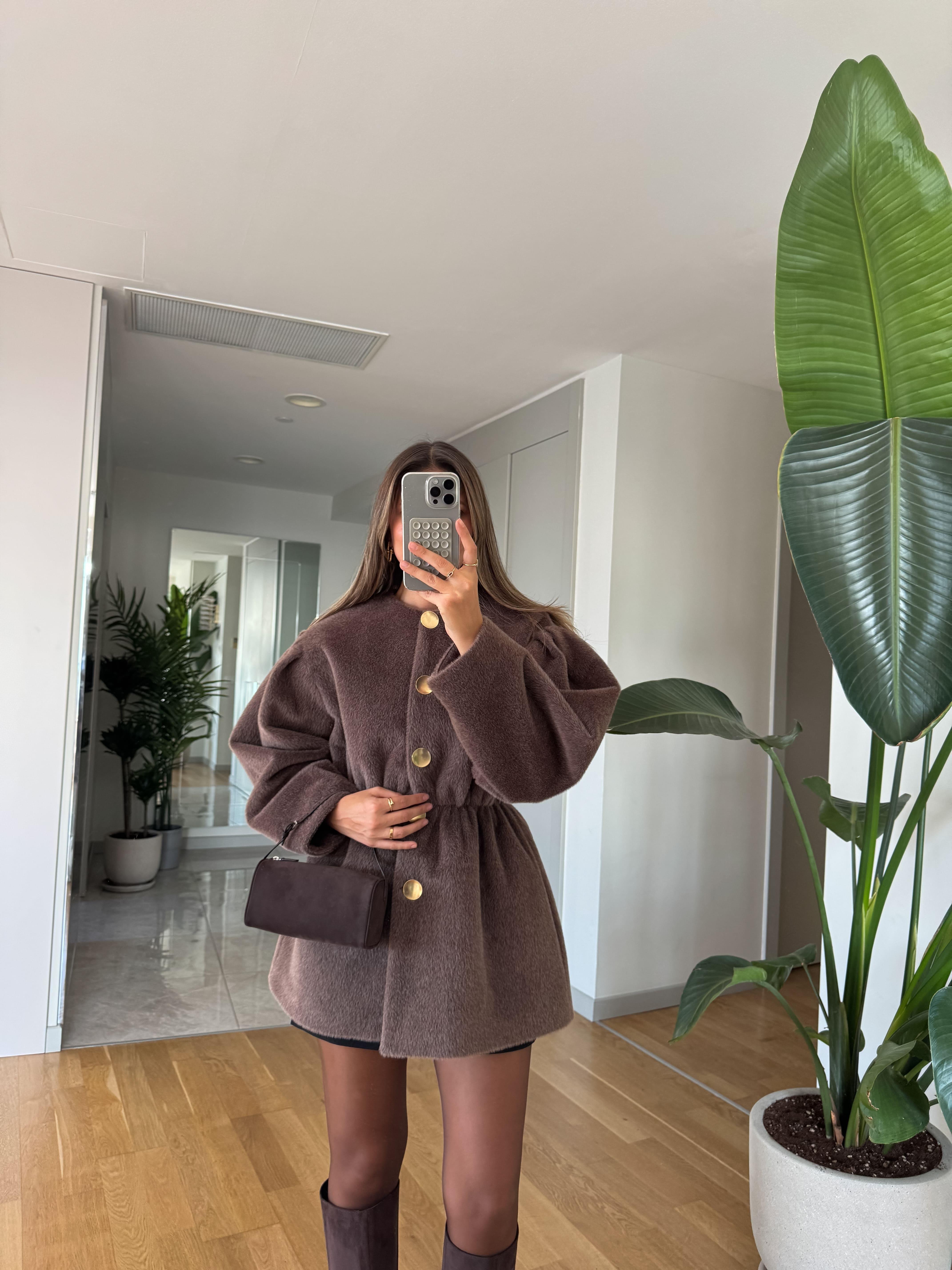Alpaka Balon Kol Düğmeli Ceket - Kahve