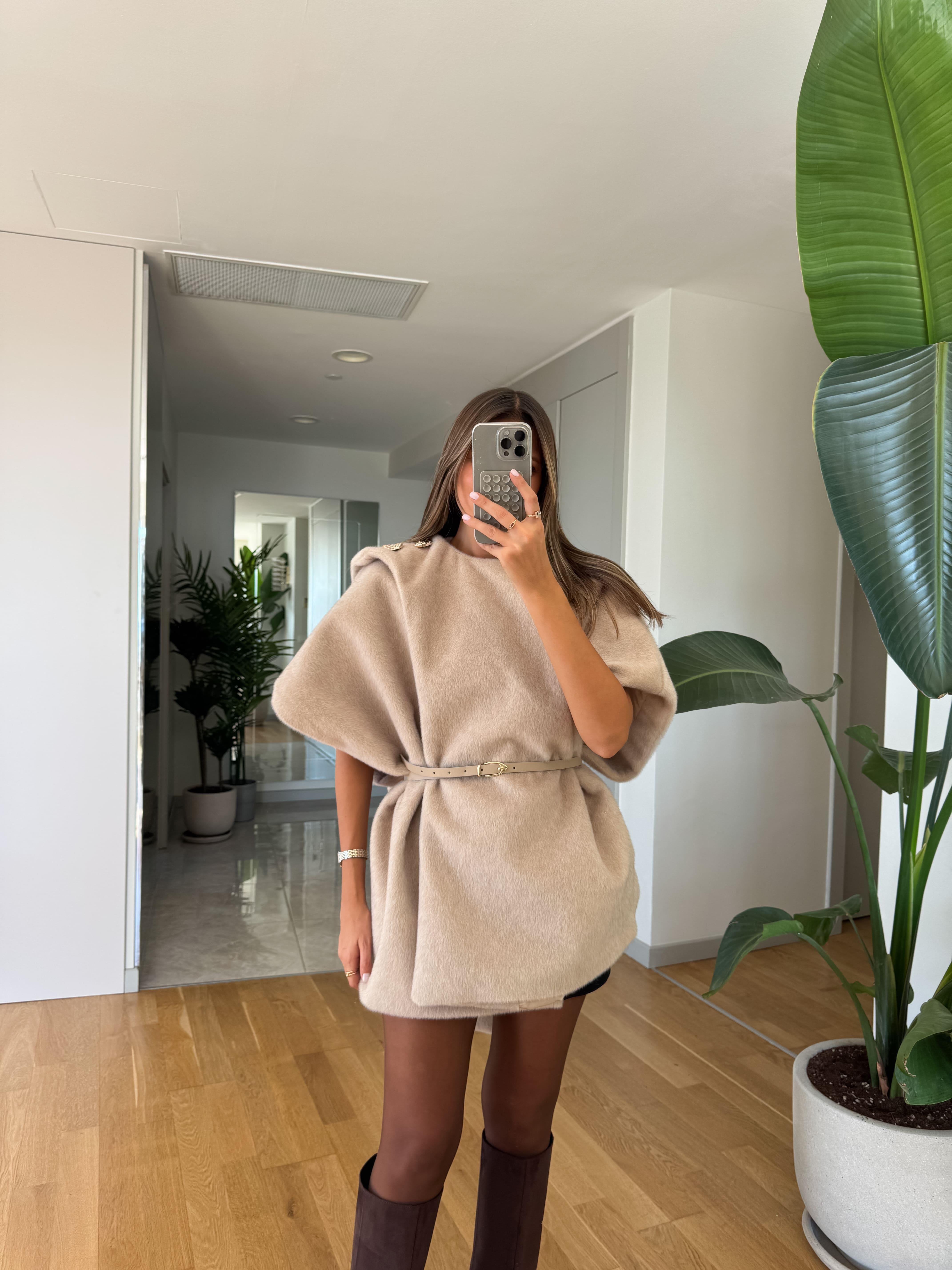 Apoletli Kemerli Kürk Panço - Bej (RLTL-KMRL-KRK-PNC-BJ)