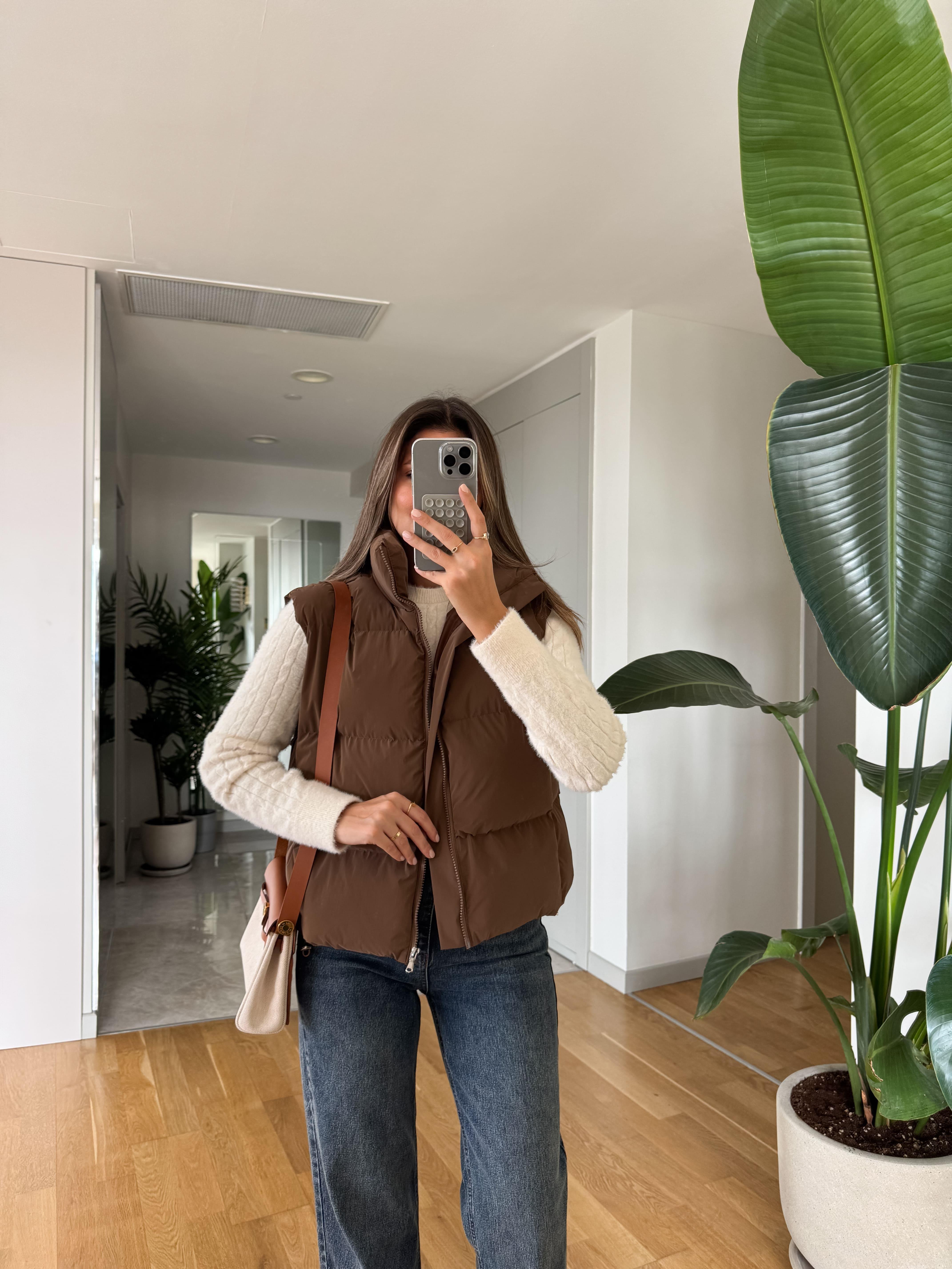 Becca Dik Yaka Şişme Yelek - Kahve