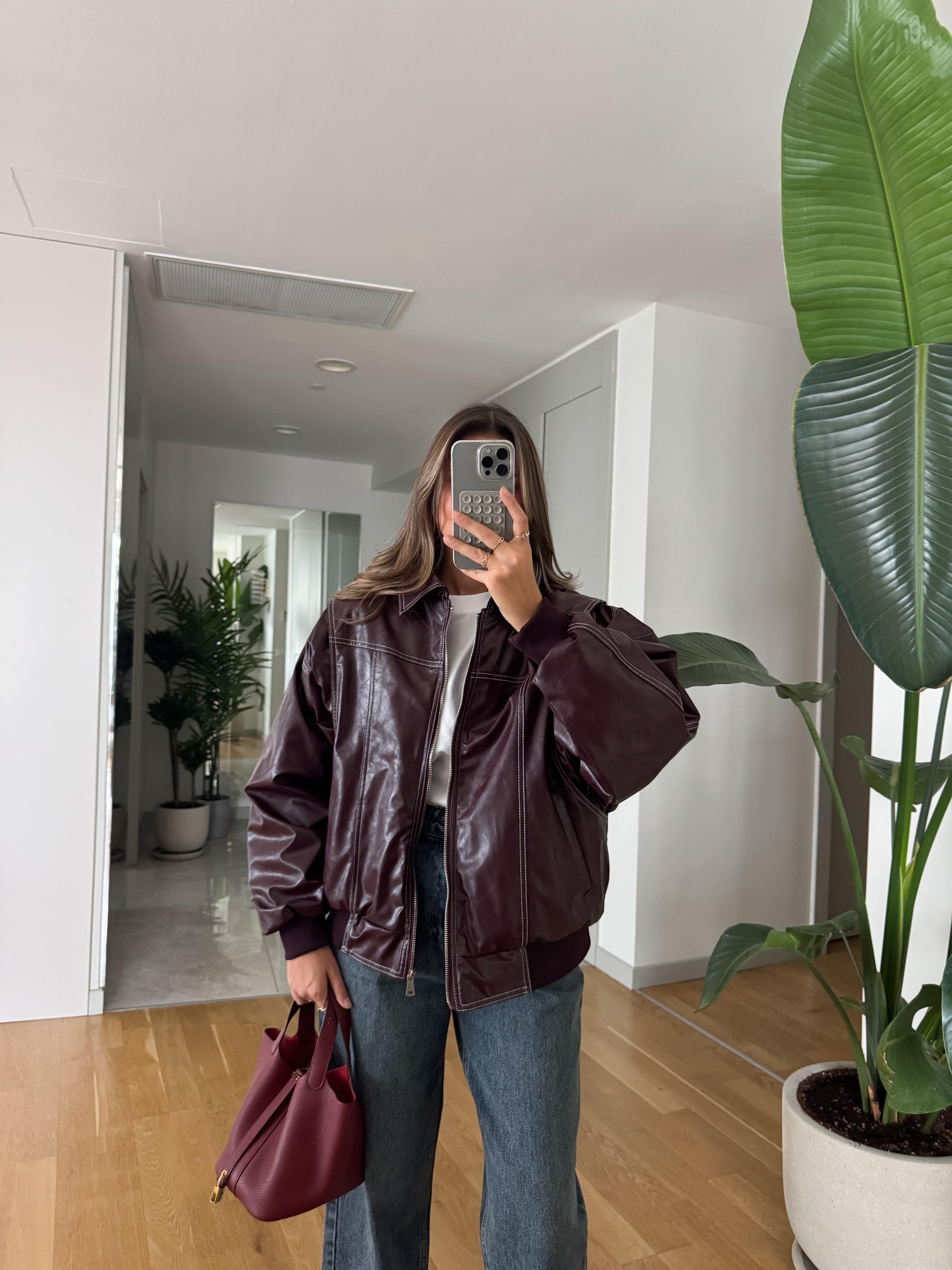 Bordo Kontrast Dikişli Deri Ceket (BRD-KNTRST-DKSL-DR-CKT)