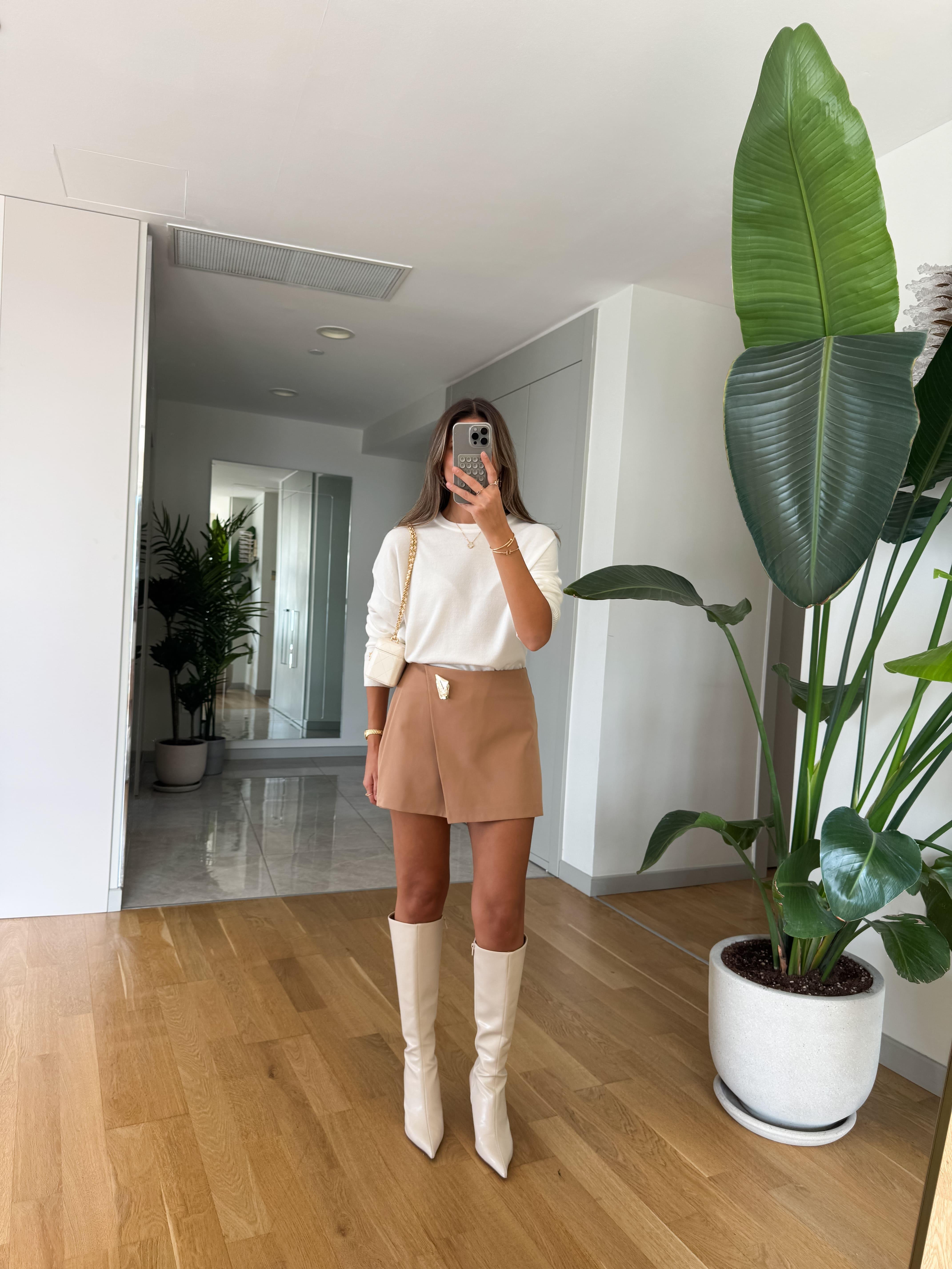 Broşlu Mini Şort Etek - Camel (BRSL-MN-SRT-TK-CML)