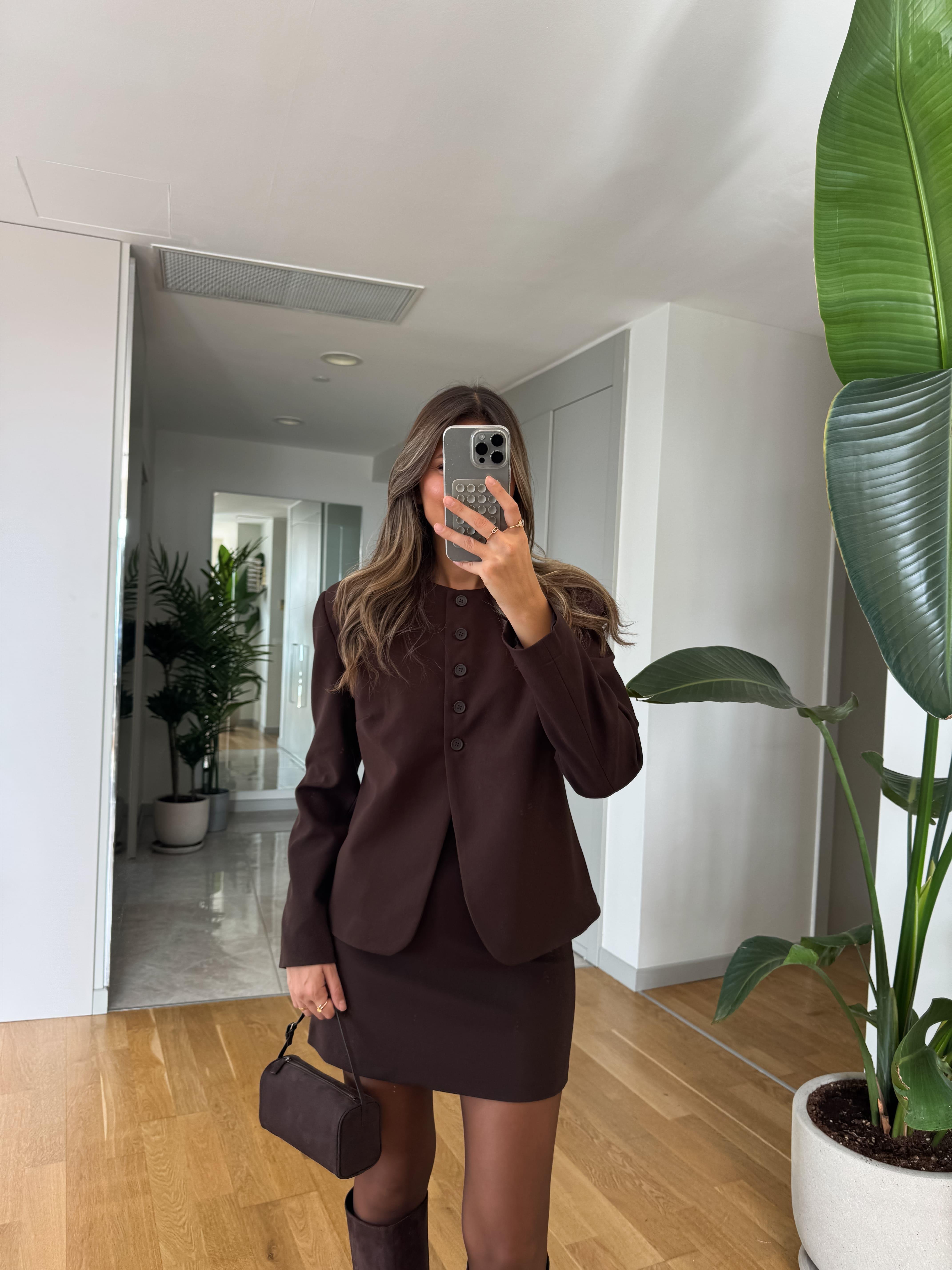 Cleo Vatkalı Beş Düğmeli Ceket - Kahve (CL-VTKL-BS-DGML-CKT-KHV)