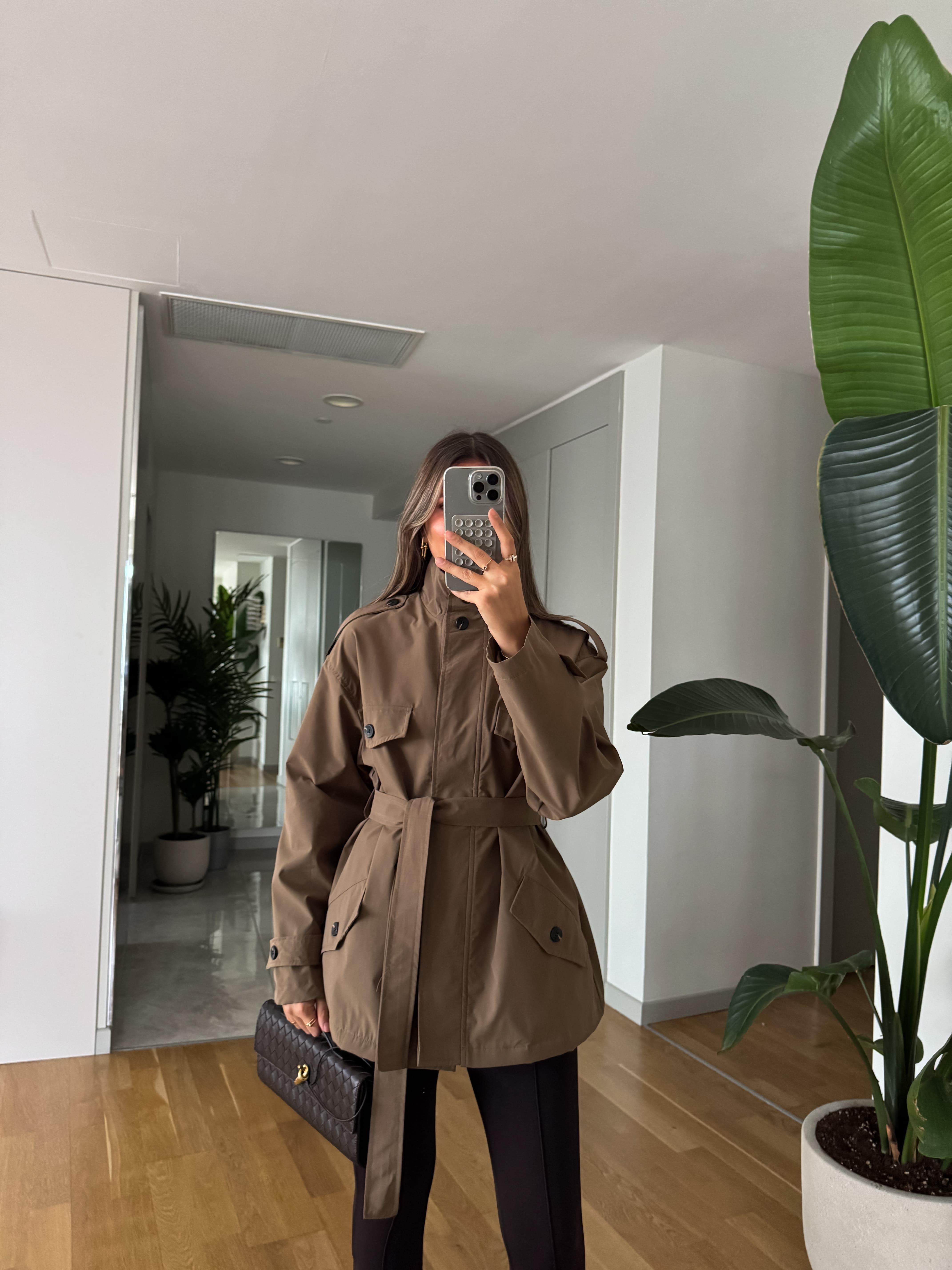 Dik Yaka Kuşaklı Trençkot - Vizon (DK-YK-KSKL-TRNÇKT-BJ)