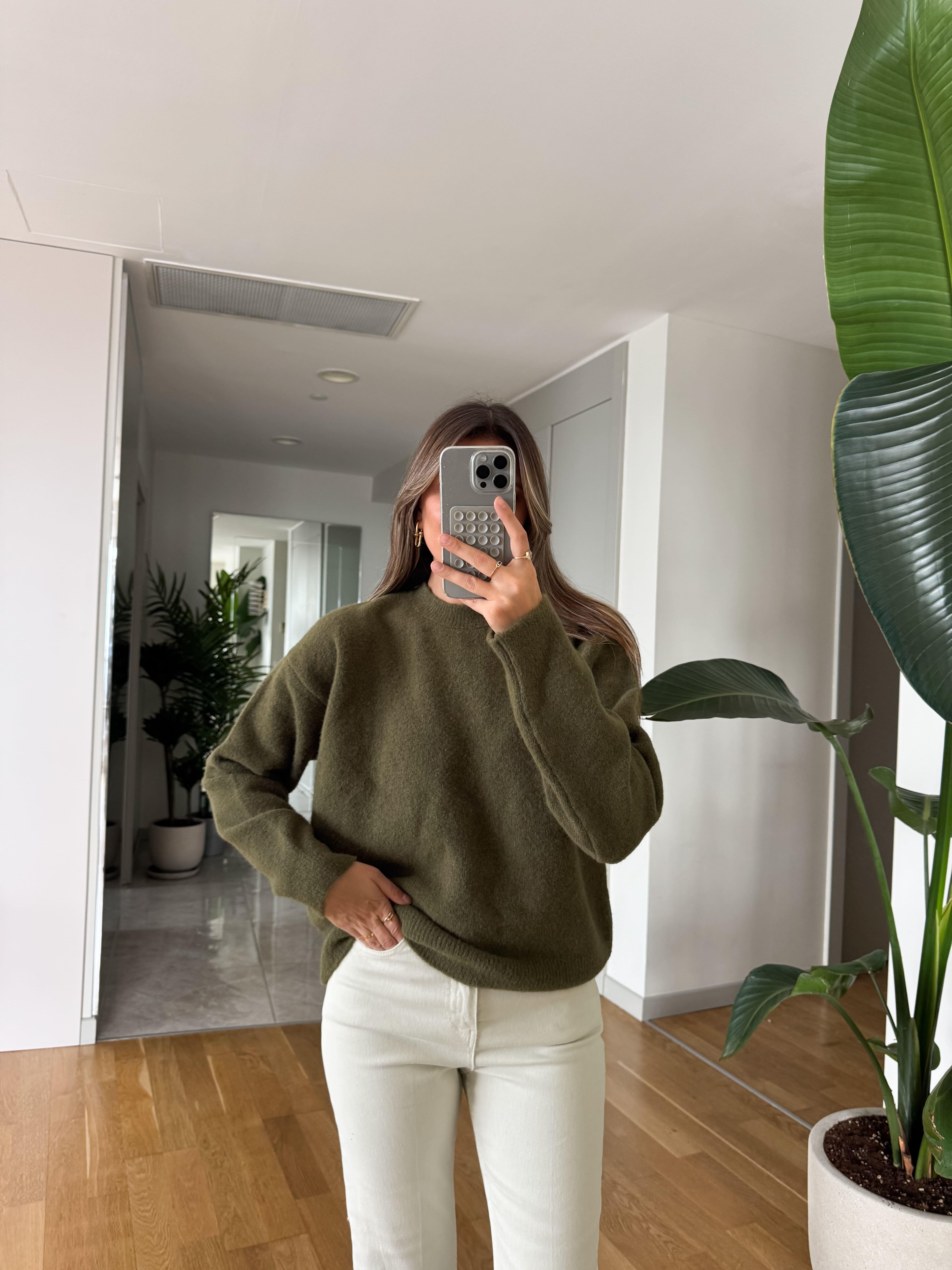 Dilvin Bisiklet Yaka Yumoş Kazak - Haki