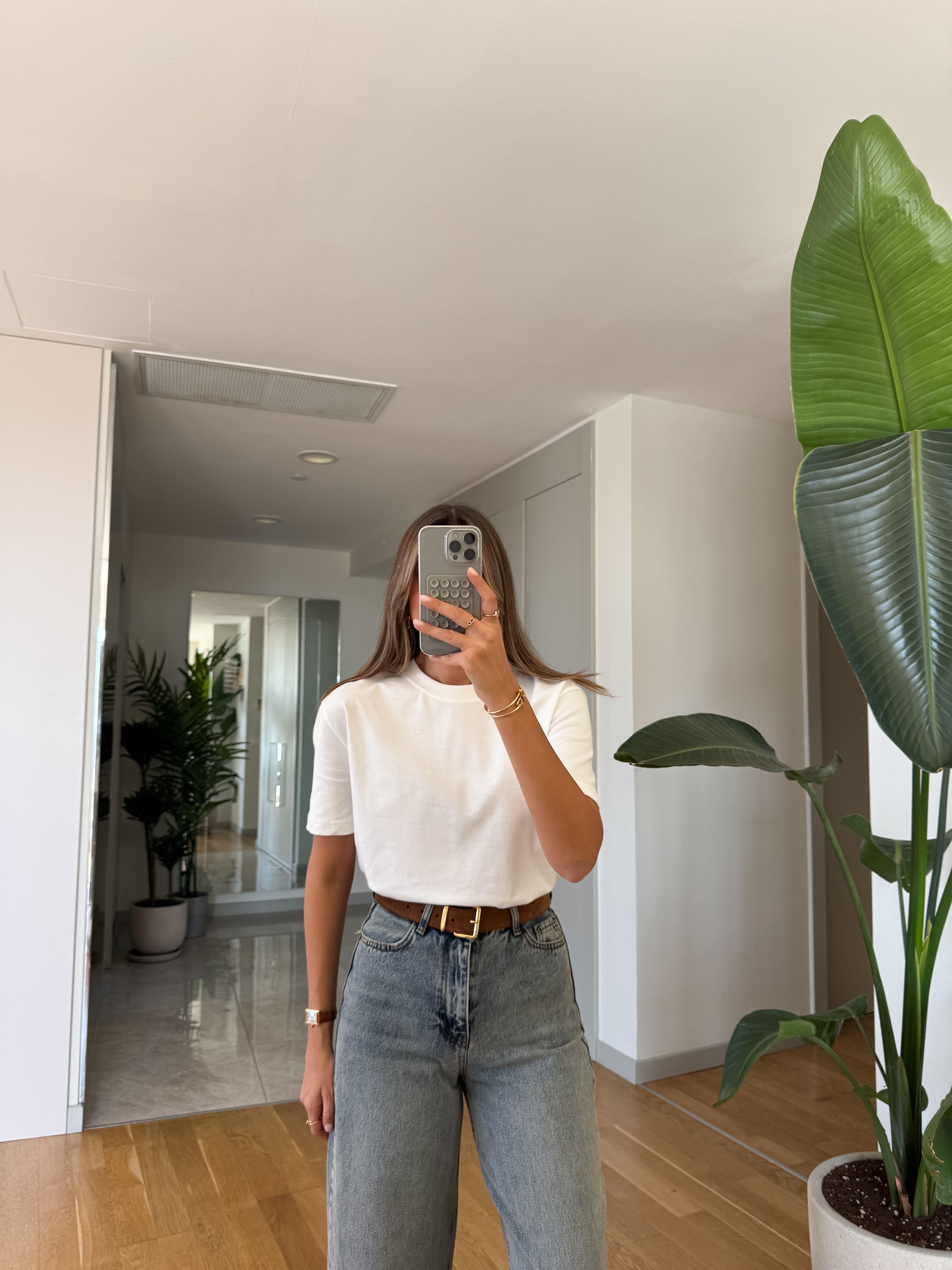 Dilvin Dekoratif Dikişli Bisiklet Yaka Tişört-Ekru (BMA1007-1014-010-200)