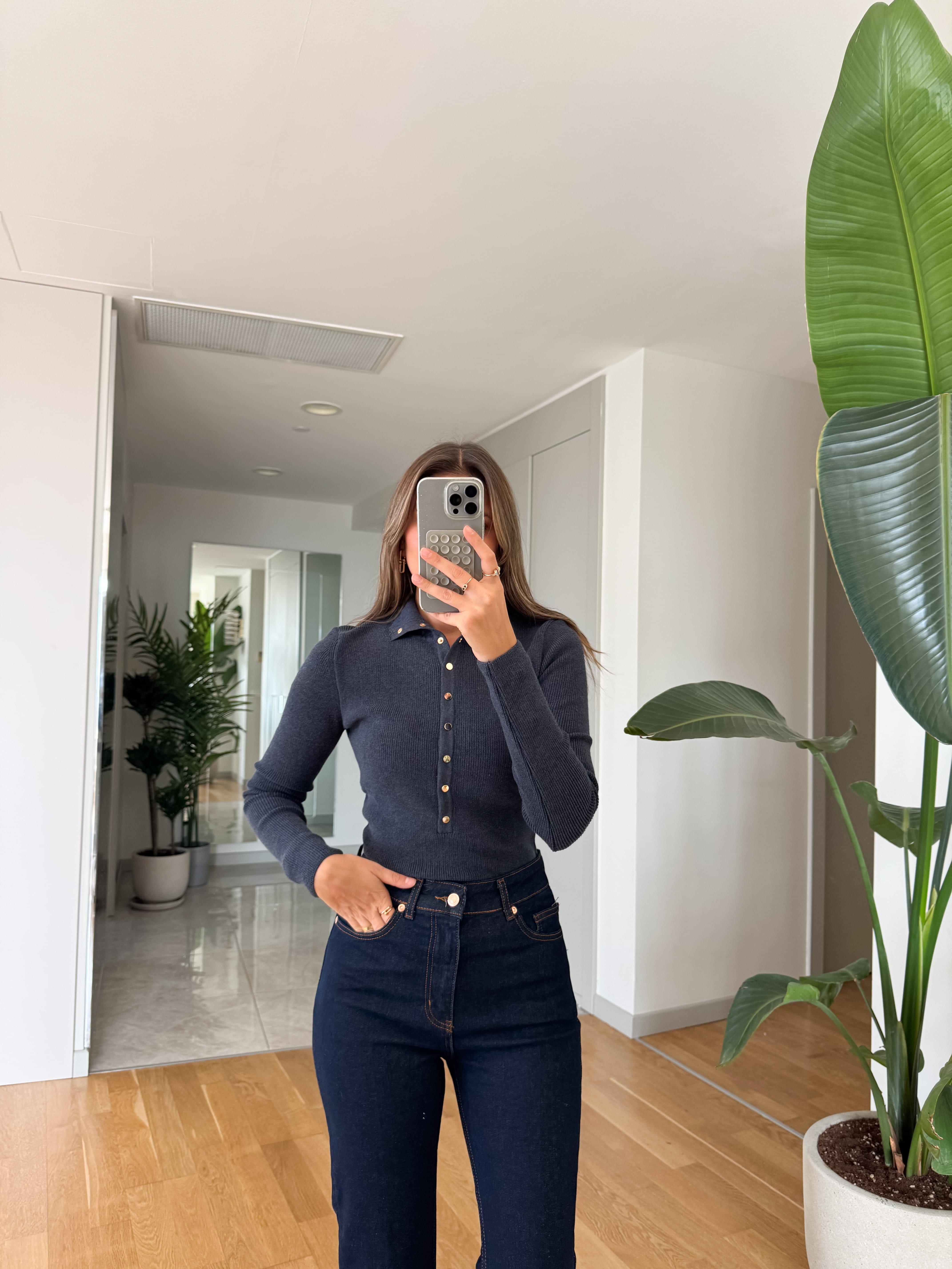 Dilvin Dik Yaka Çıtçıtlı Triko Kazak - İndigo (DLVN-DK-YK-CTCTL-TRK-KZK-NDG)