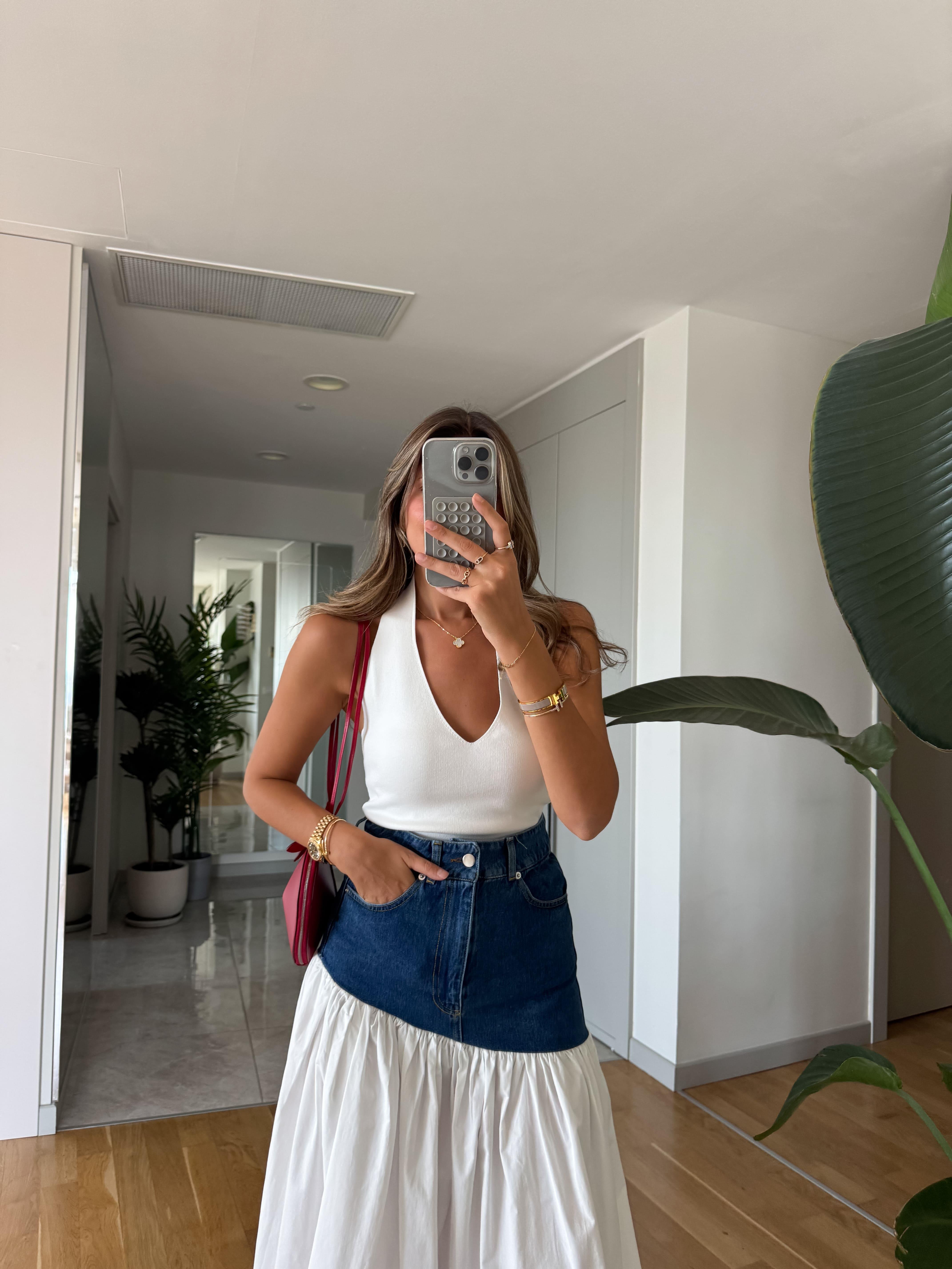 Dilvin Halter Yaka Triko Bluz - Beyaz