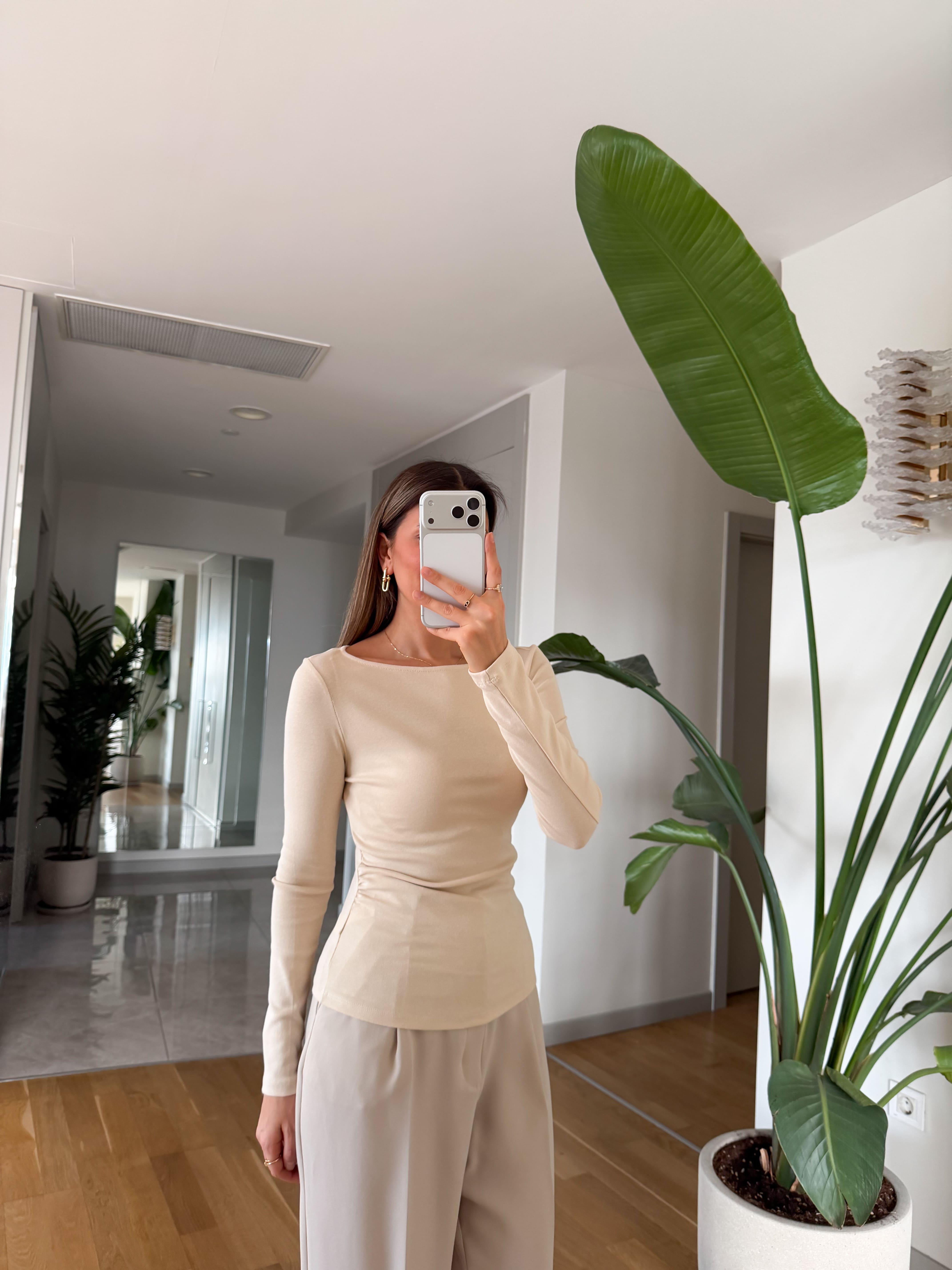 Dilvin Kayık Yaka Drapeli Basic - Taş (DLVN-KYKYK-DRPL-BSC-BLZ-TS)