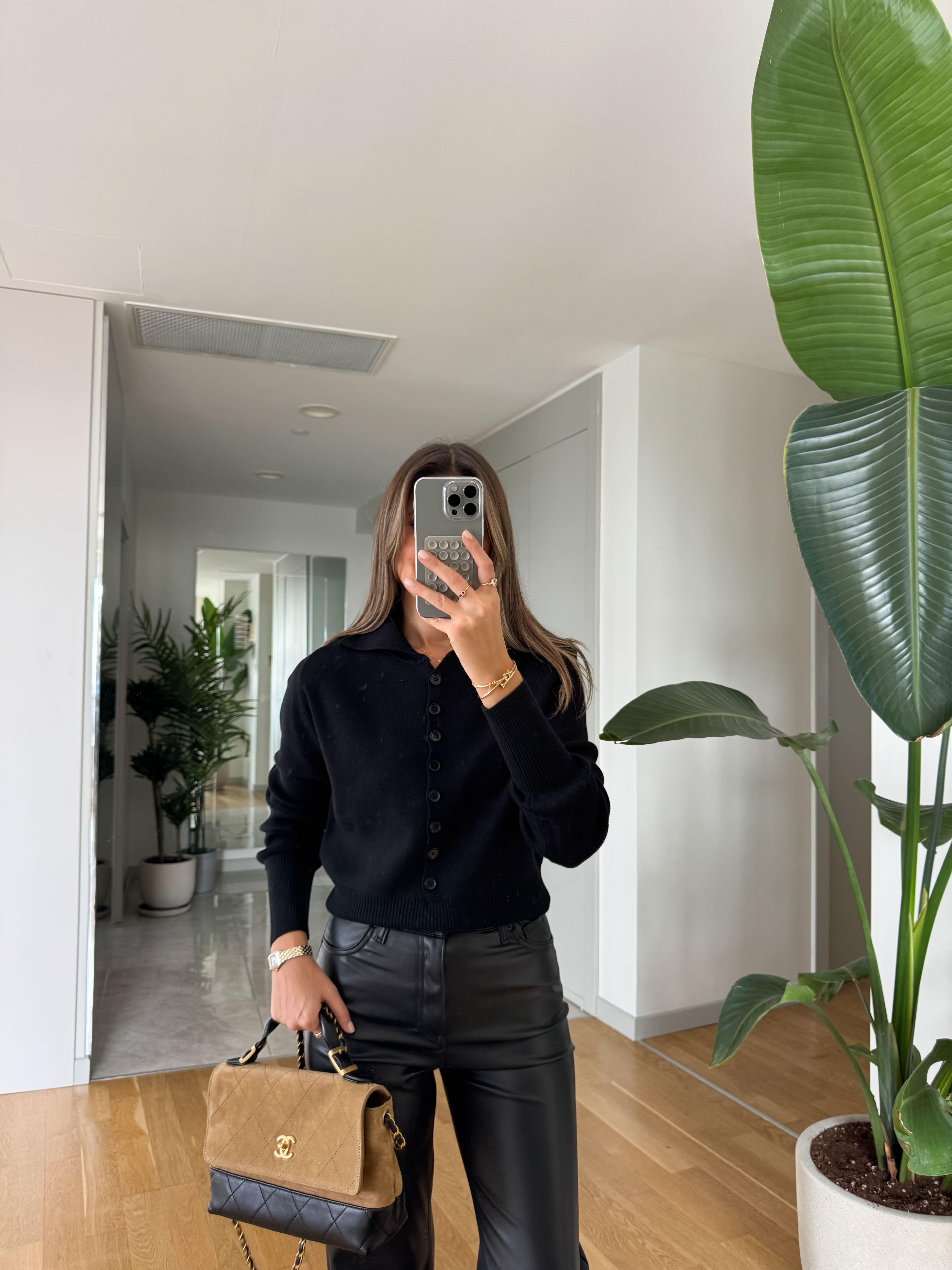 Dilvin Polo Yaka Düğmeli Triko - Siyah