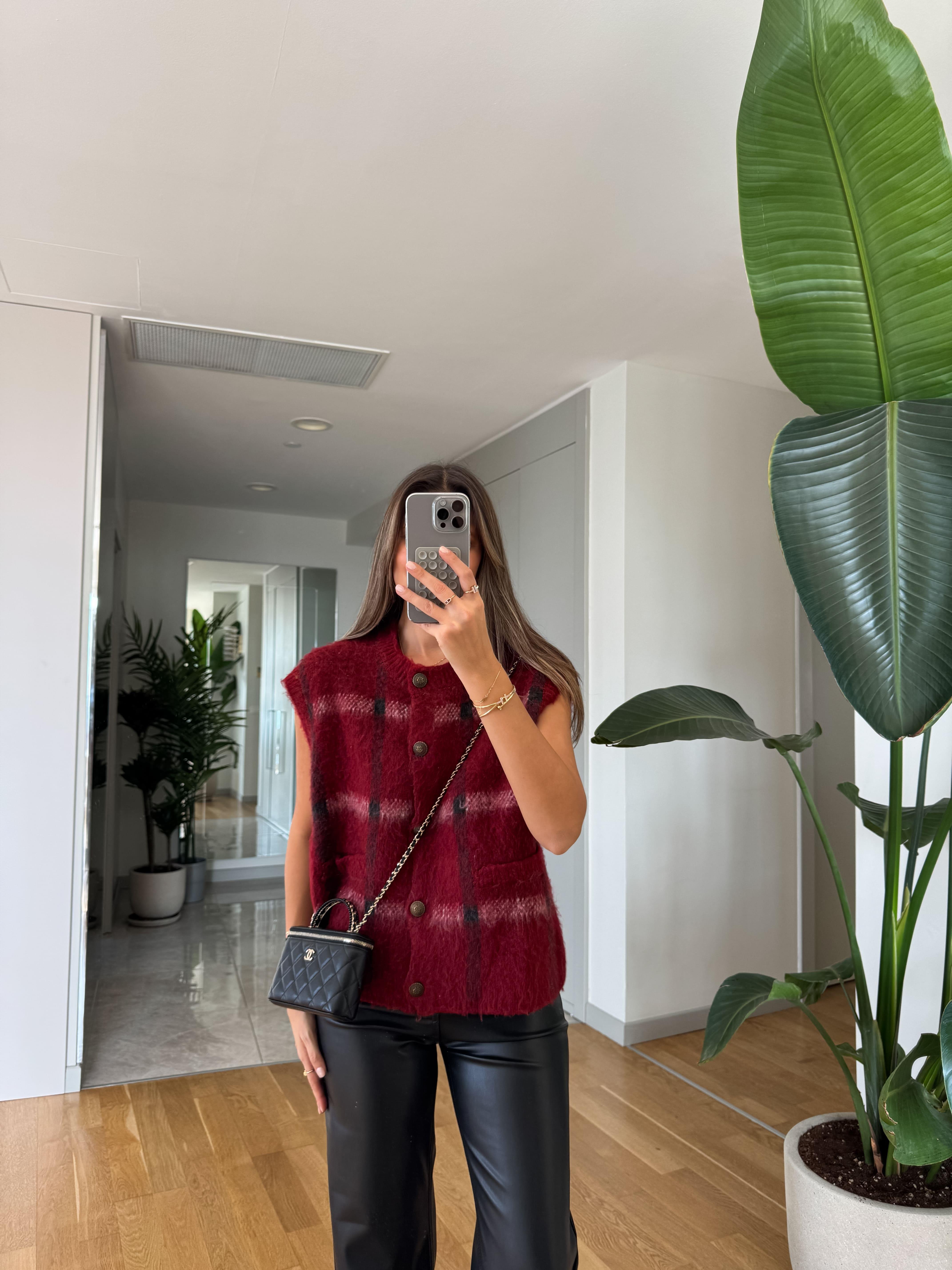 Ekose Desen Yumoş Yelek - Bordo (KS-DSN-YMS-YLK-BRD)