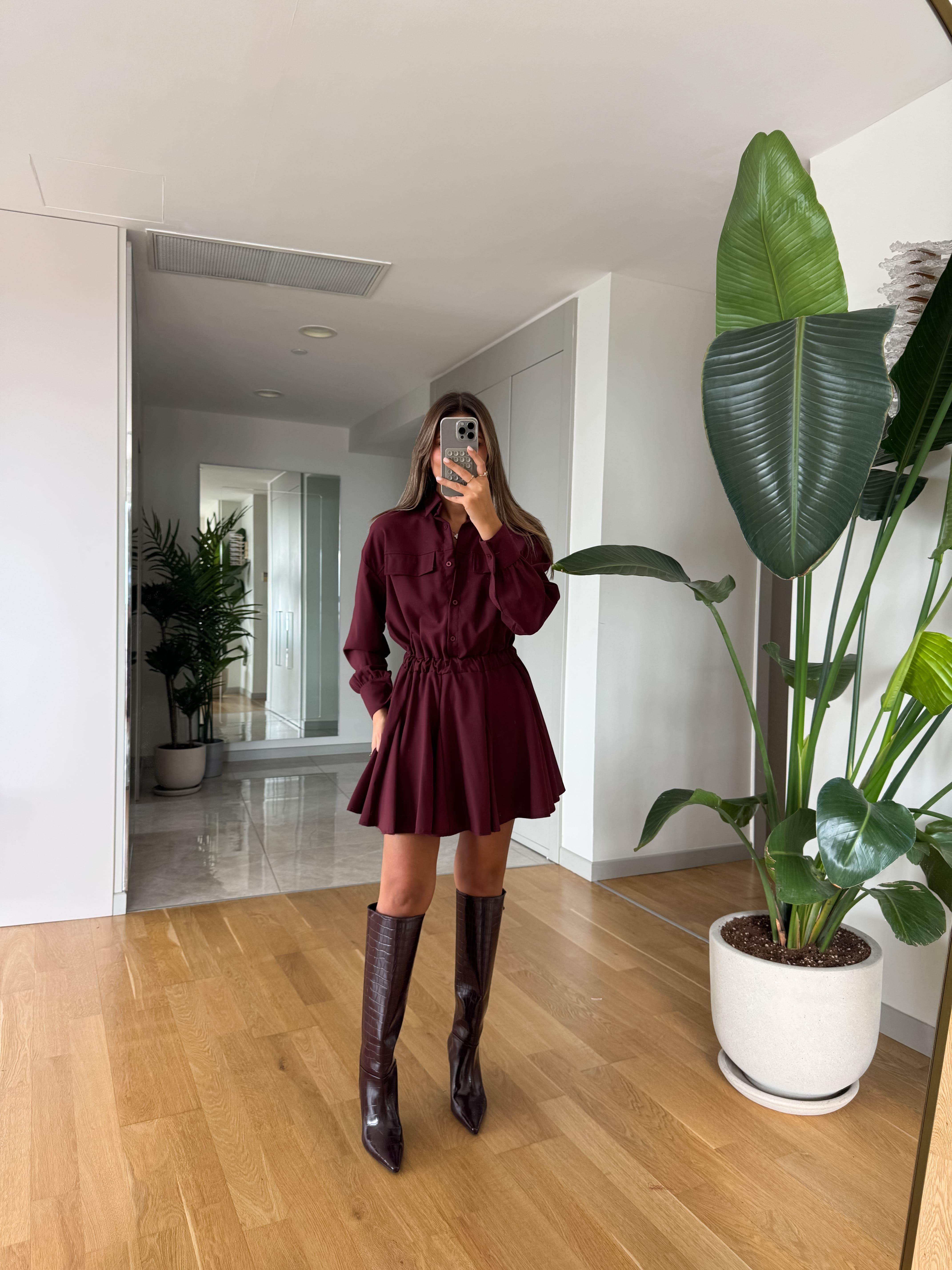 Cep Godeli Gömlek Elbise - Bordo (CP-GDL-GMLK-LBS-BRD)
