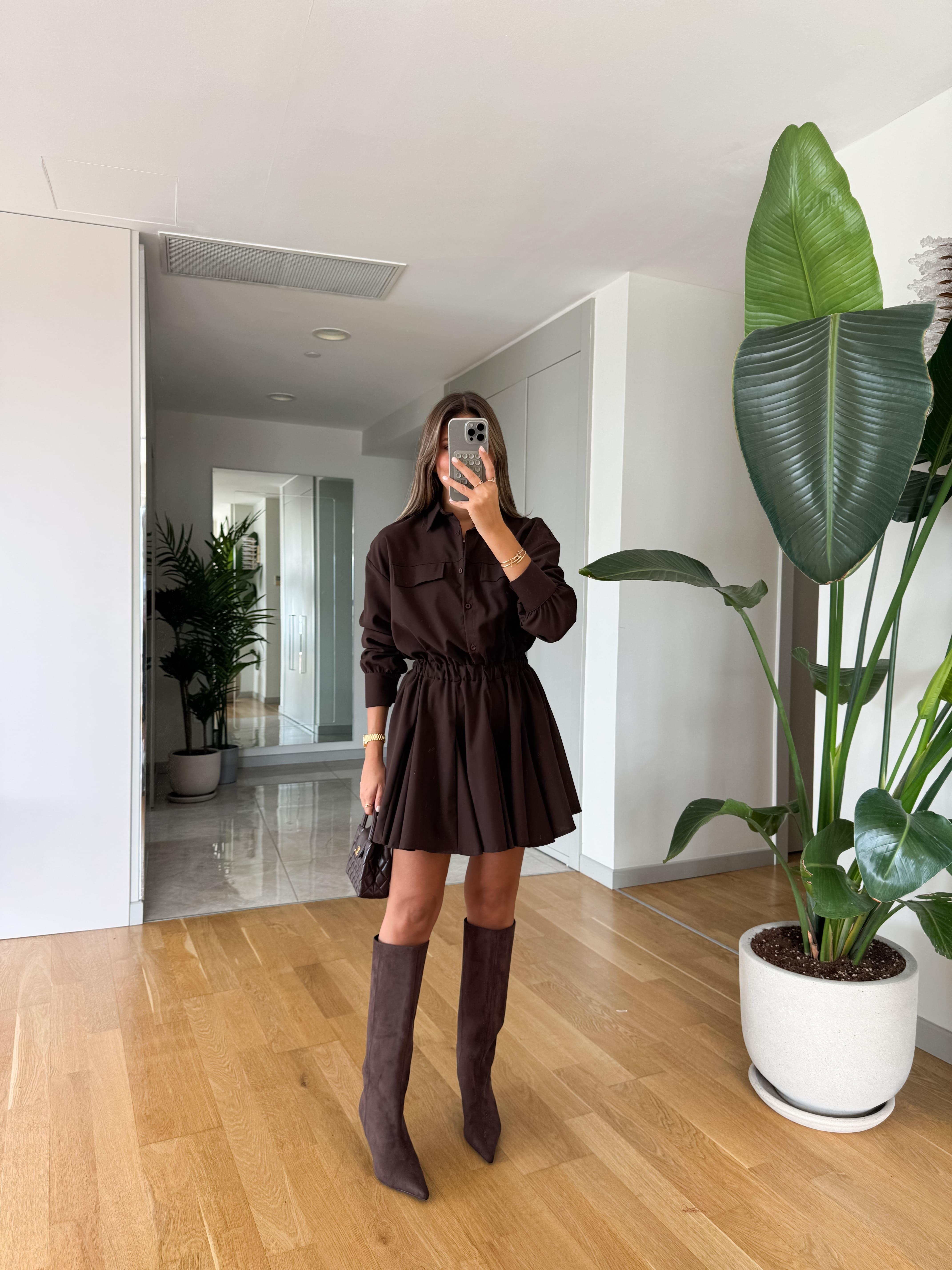 Cep Godeli Gömlek Elbise - Kahve (CP-GDL-GMLK-LBS-KHV)
