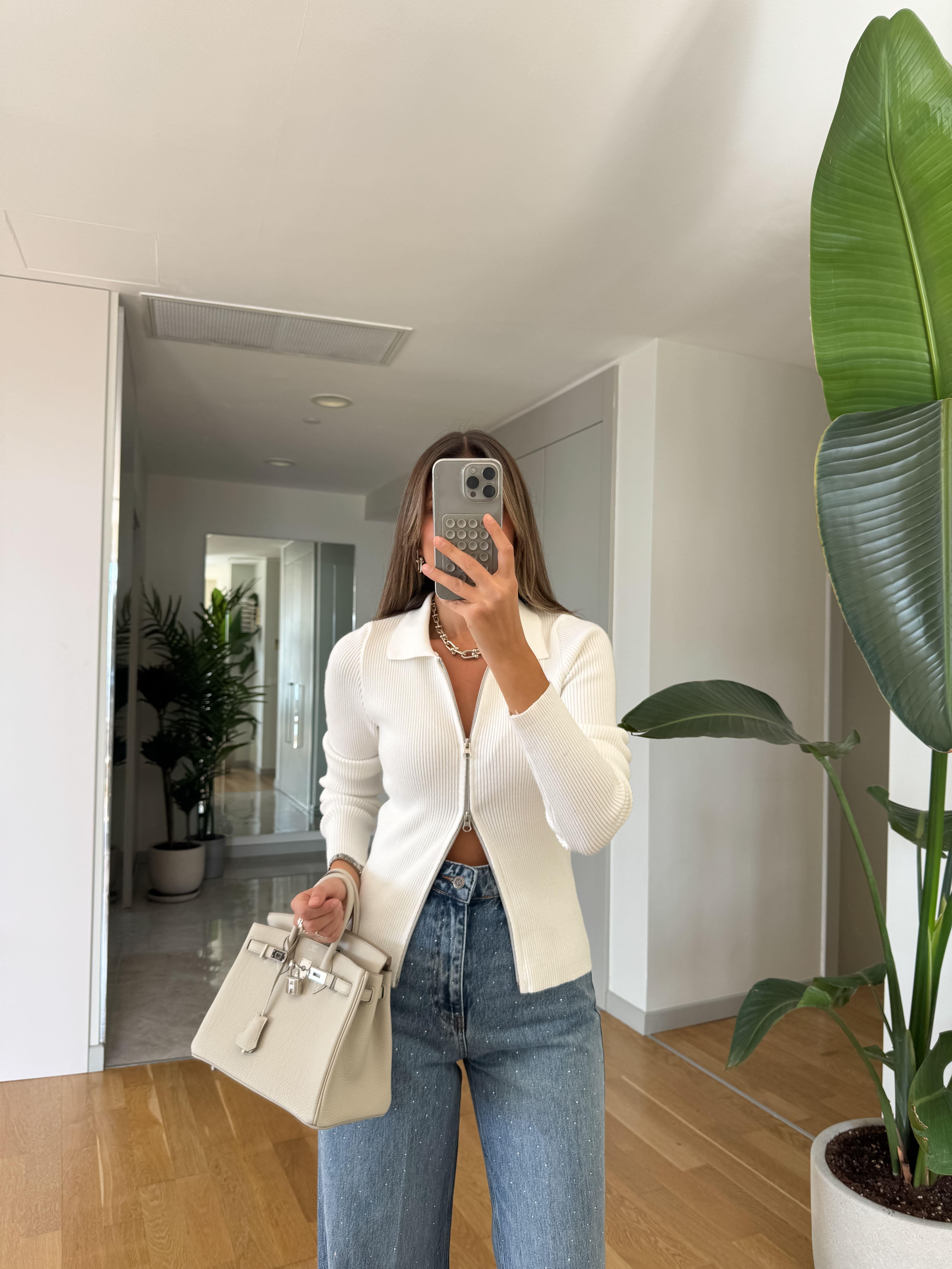 Cyrus Fermuarlı Triko Hırka - Ekru