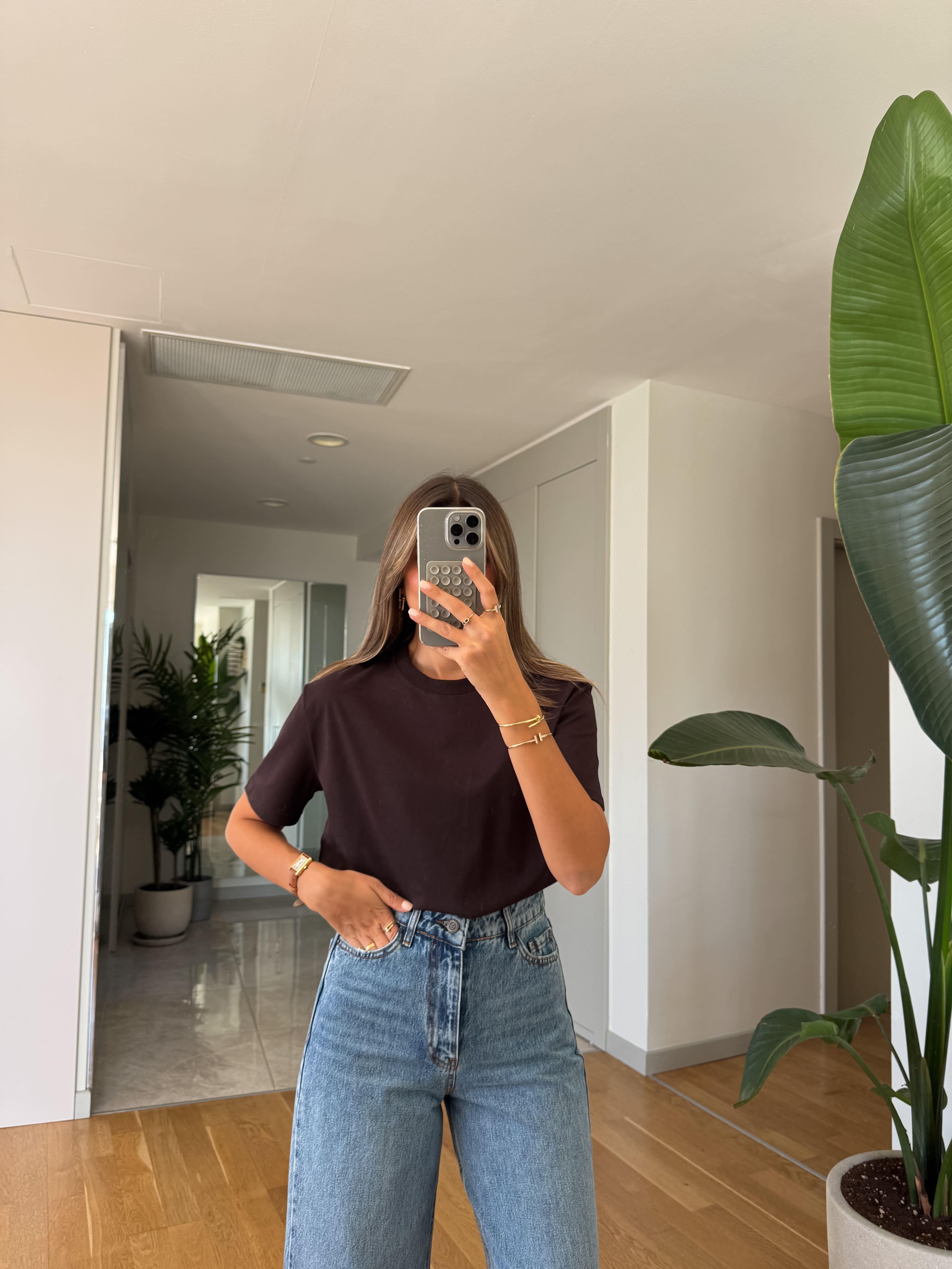 Dilvin Dekoratif Dikişli Bisiklet Yaka Tişört-Koyu Kahve (DLVN-DKRTF-DKSL-BSKLT-YK-TSRT-KY-KHV)