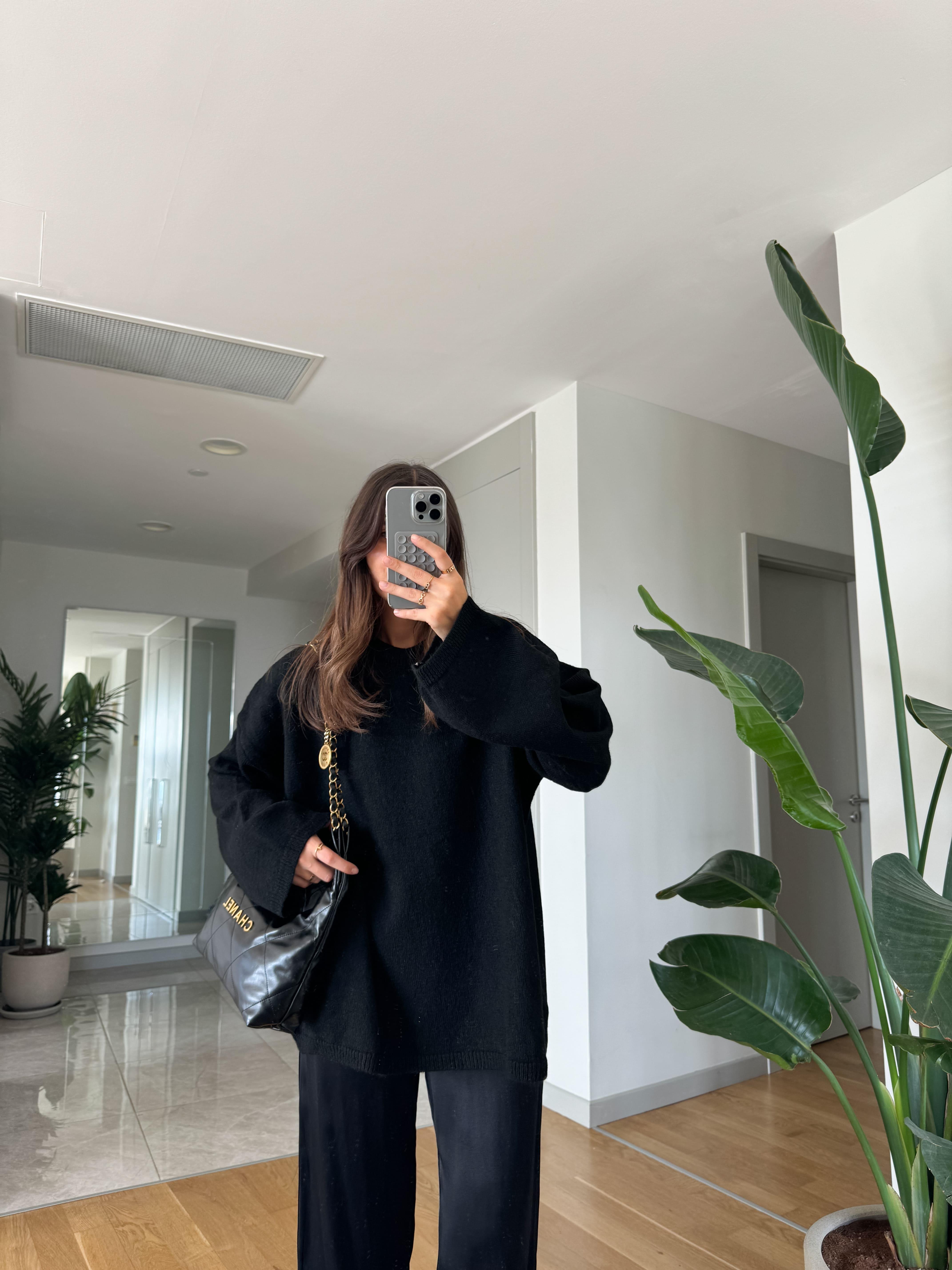 Javed Bisiklet Yaka Pinterest Kazak-Siyah