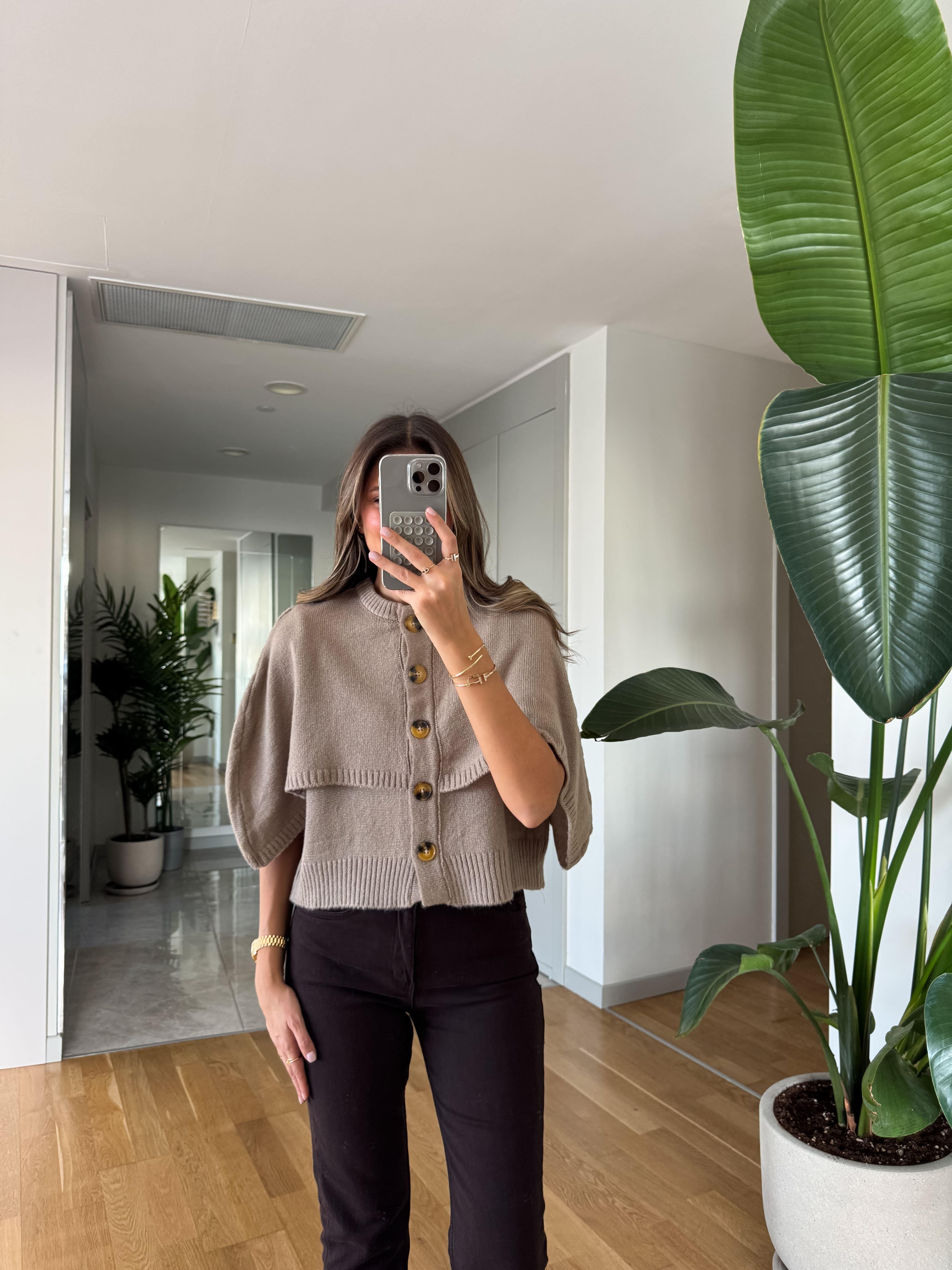 Pelerinli Kısa Kollu Hırka - Vizon (PLRNL-KS-KLL-HRK-VZN)