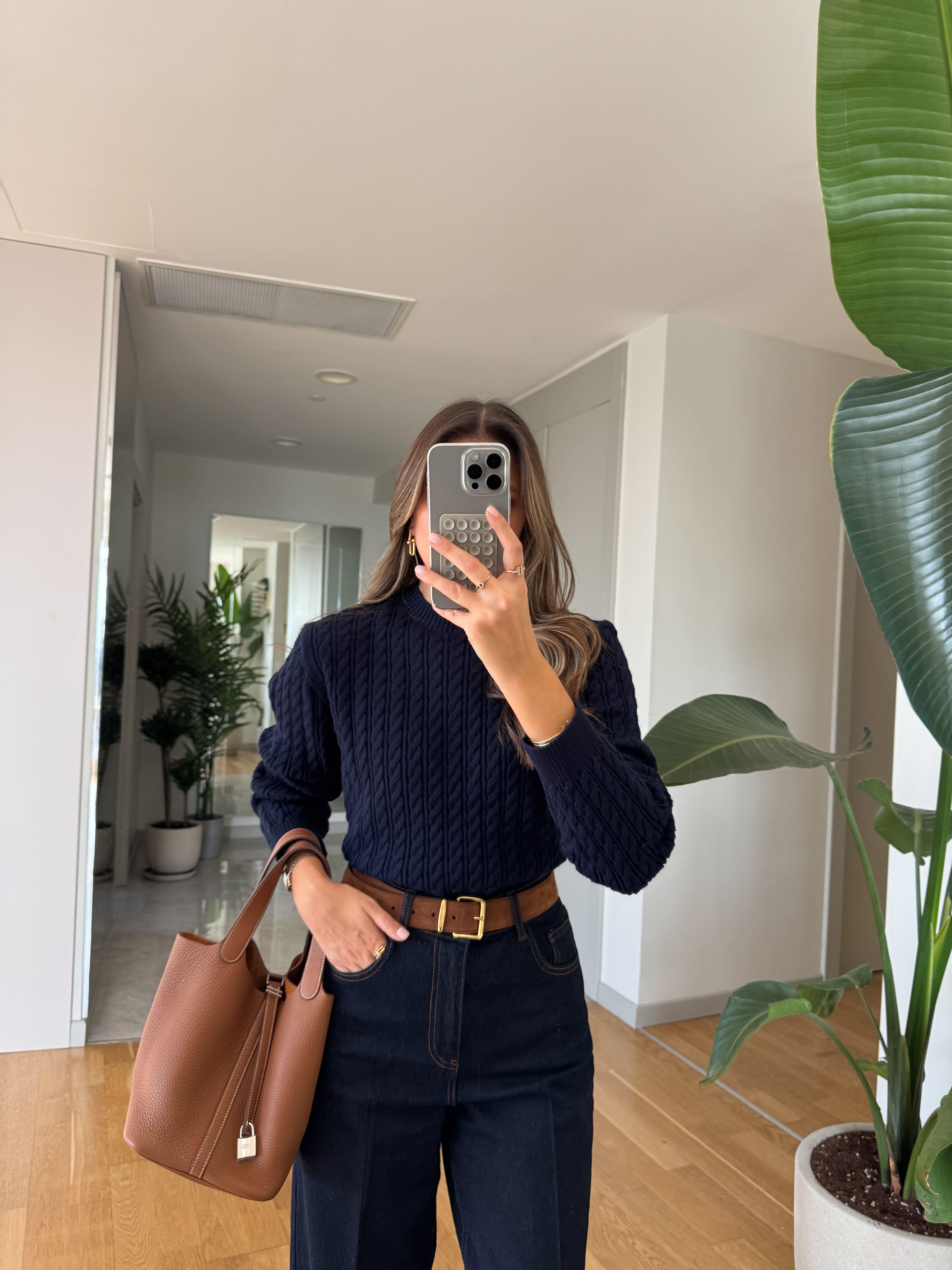 Tina Saç Örgülü Kazak - Lacivert (TN-SC-RGL-KZK-LCVRT)