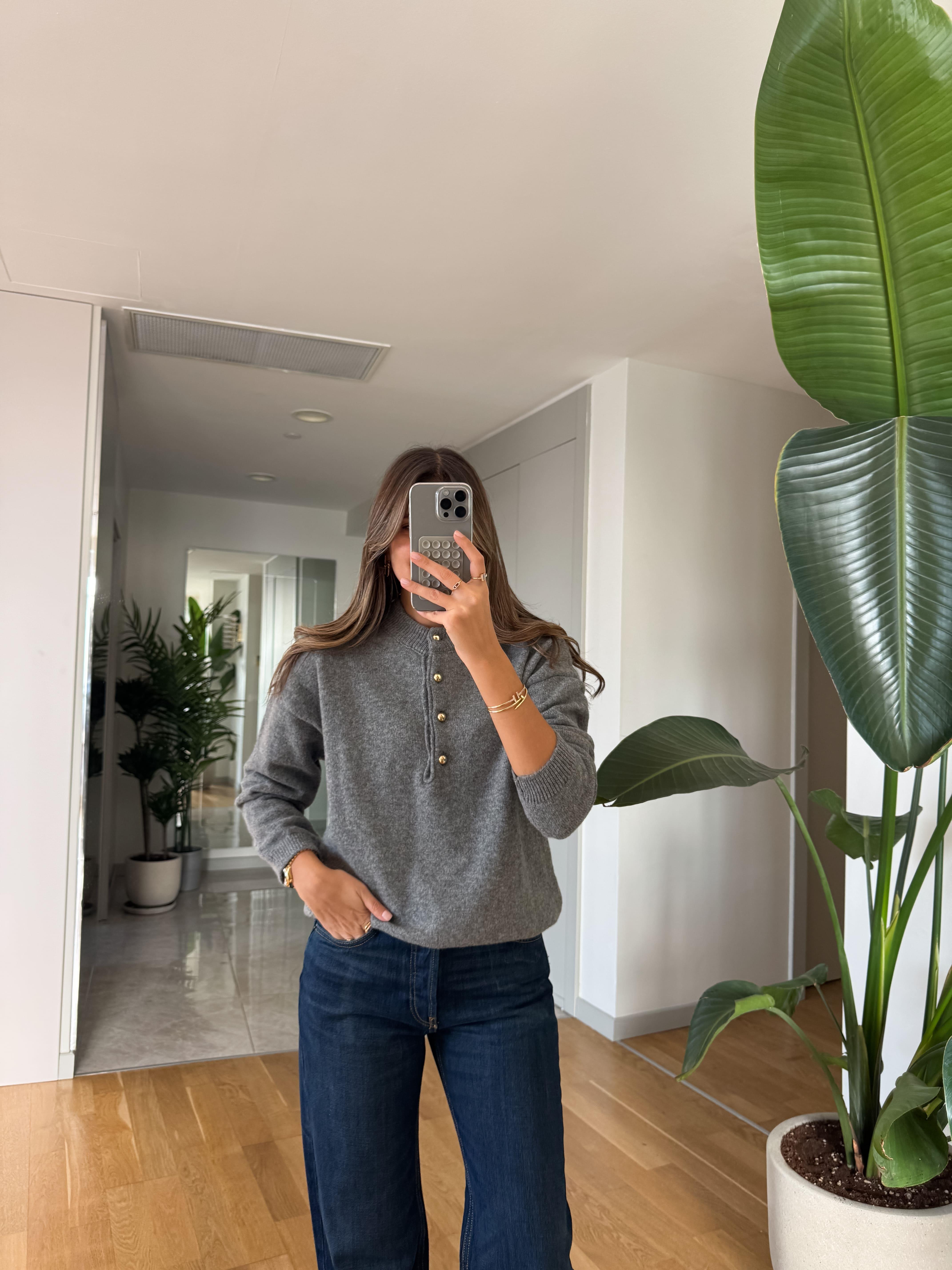 Top Düğmeli Kazak - Gri (TP-DGML-KZK-GR)