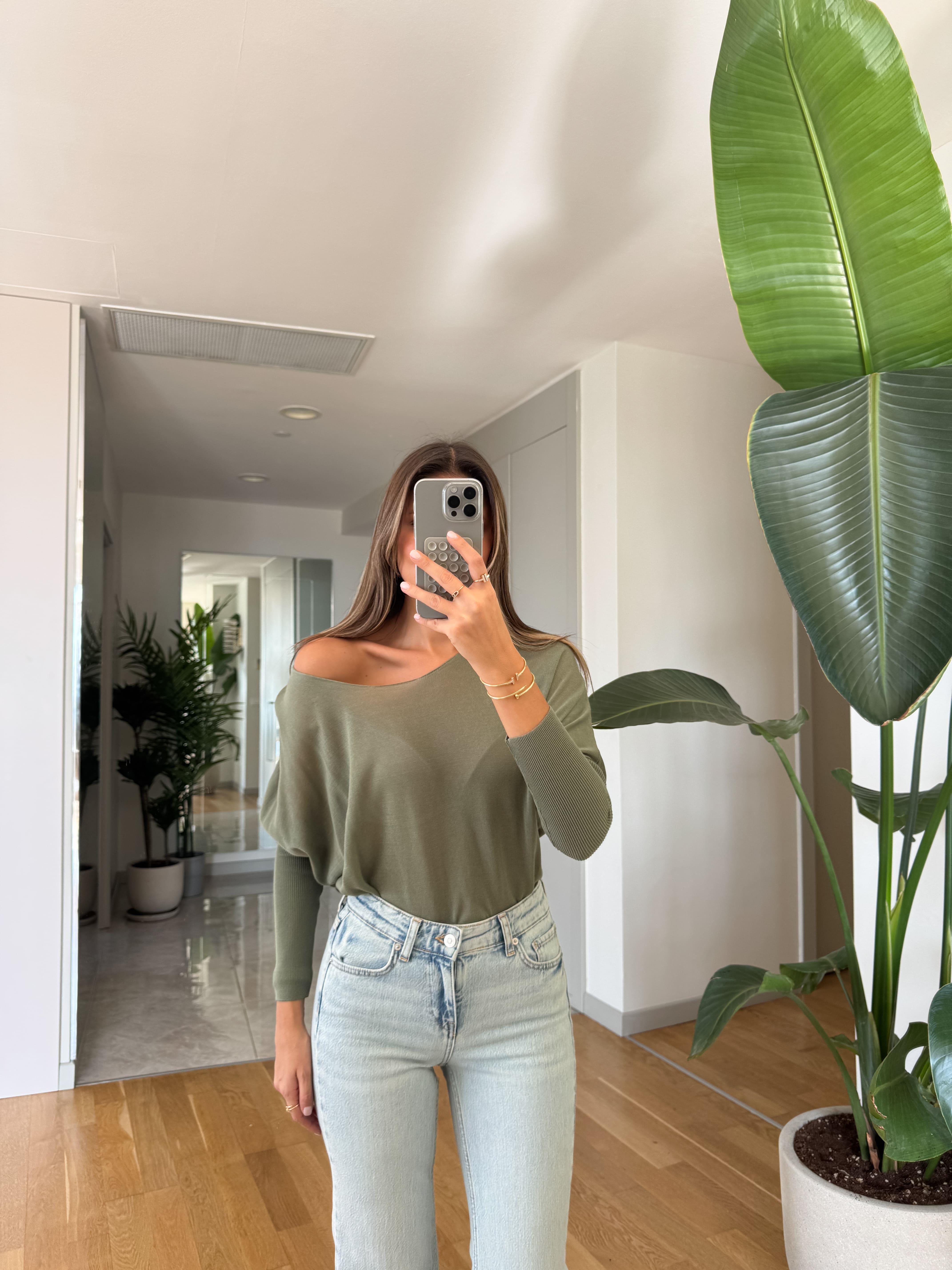 Kayık Yaka Kol Detaylı Triko Bluz - Haki (KYK-YK-KL-DTYL-TRK-BLZ-HK)