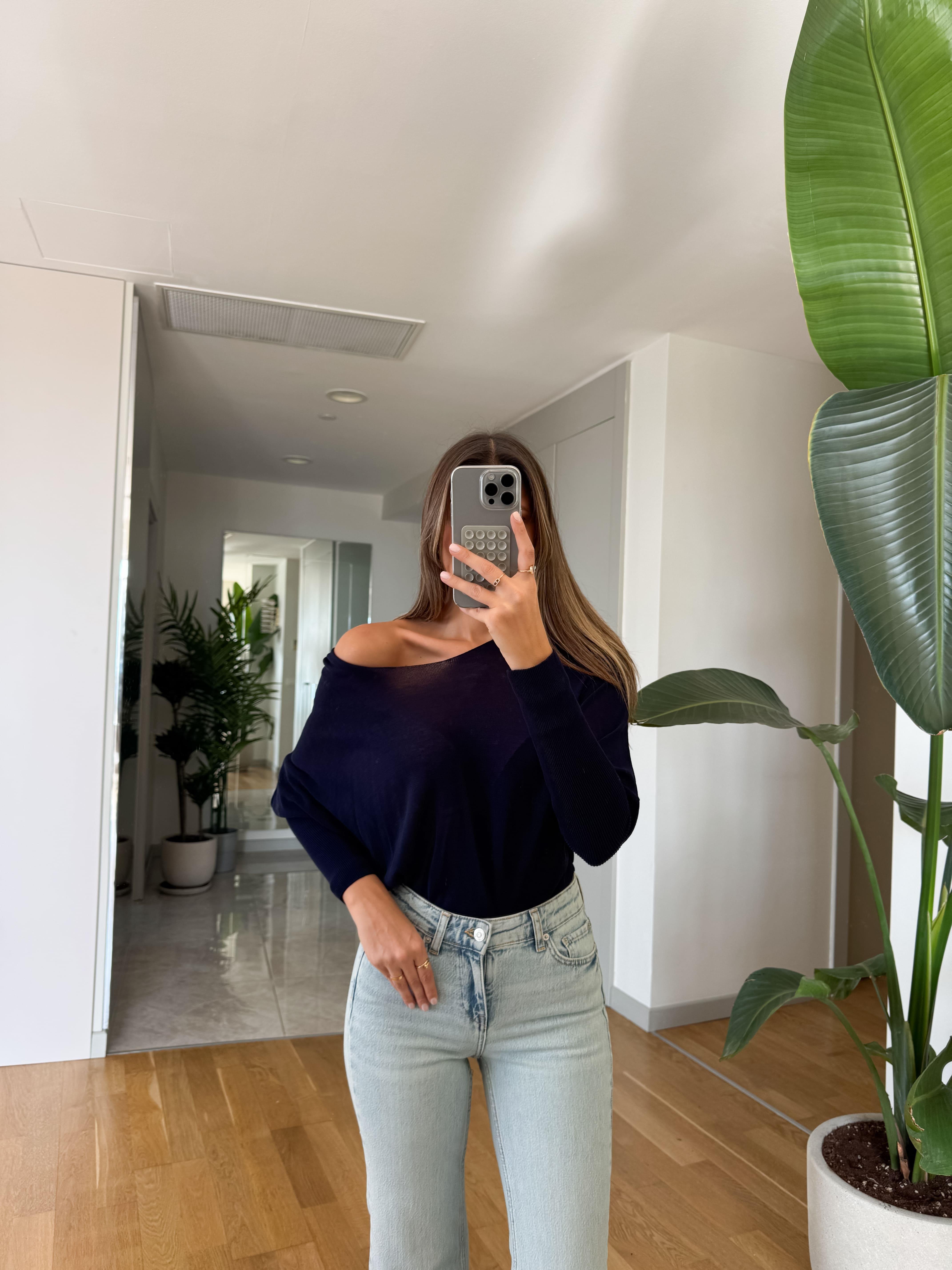 Kayık Yaka Kol Detaylı Triko Bluz - Lacivert (KYK-YK-KL-DTYL-TRK-BLZ-LCVRT)