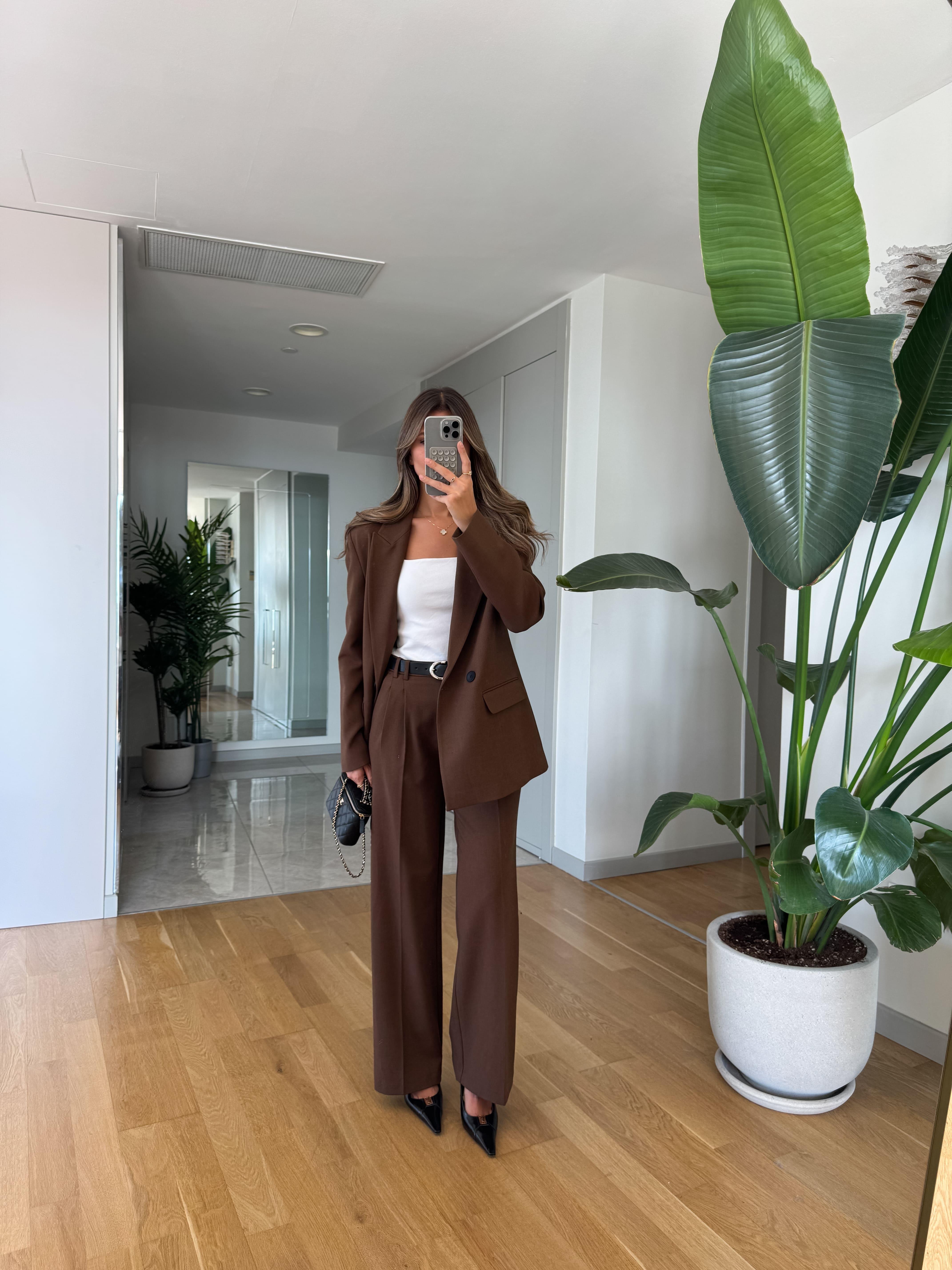 Kemerli Geniş Paça Kumaş Pantolon - Açık Kahve