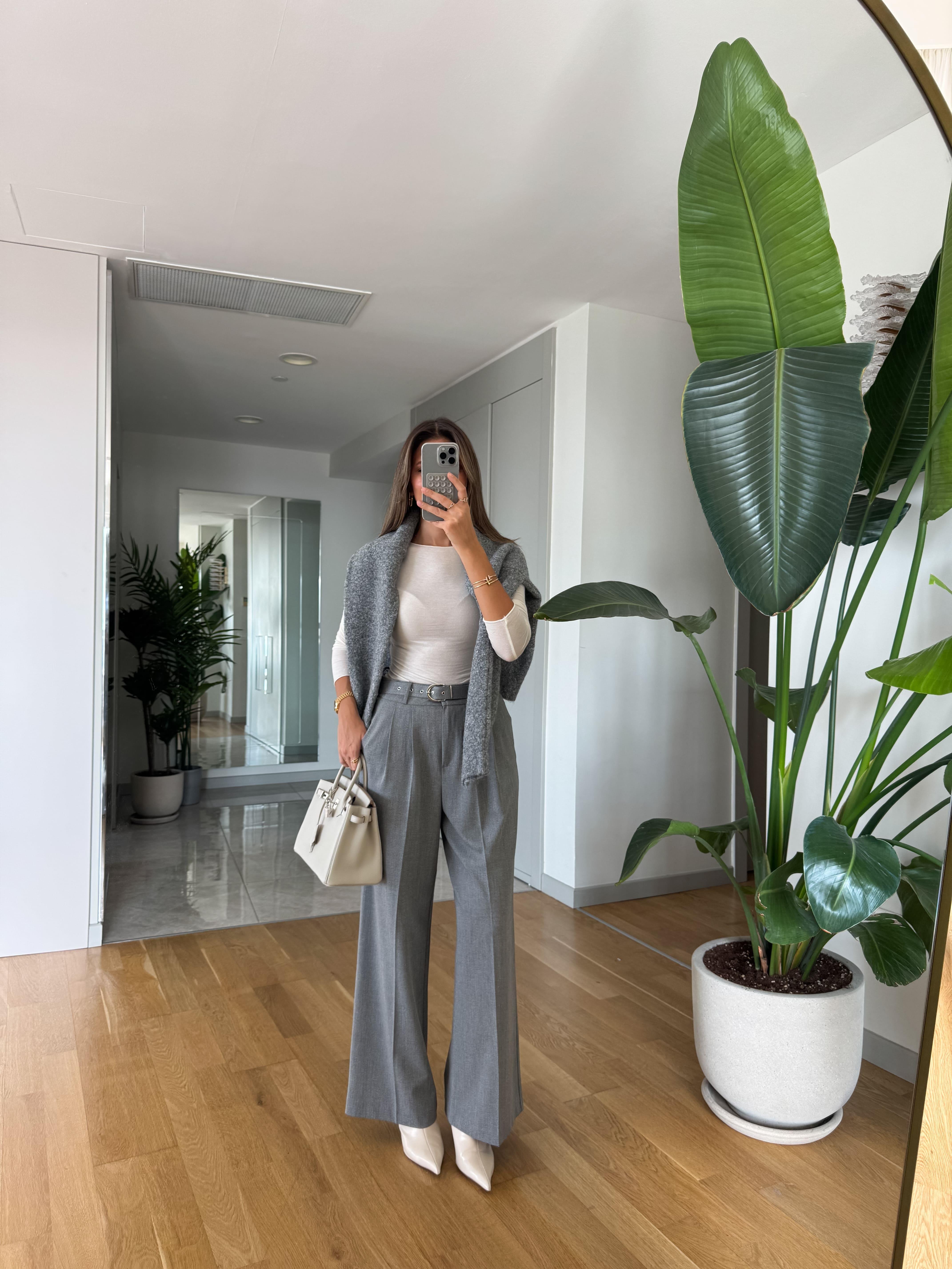 Kemerli Palazzo Pantolon - Gri (KMRL-PLZZ-PNTLN-GR)