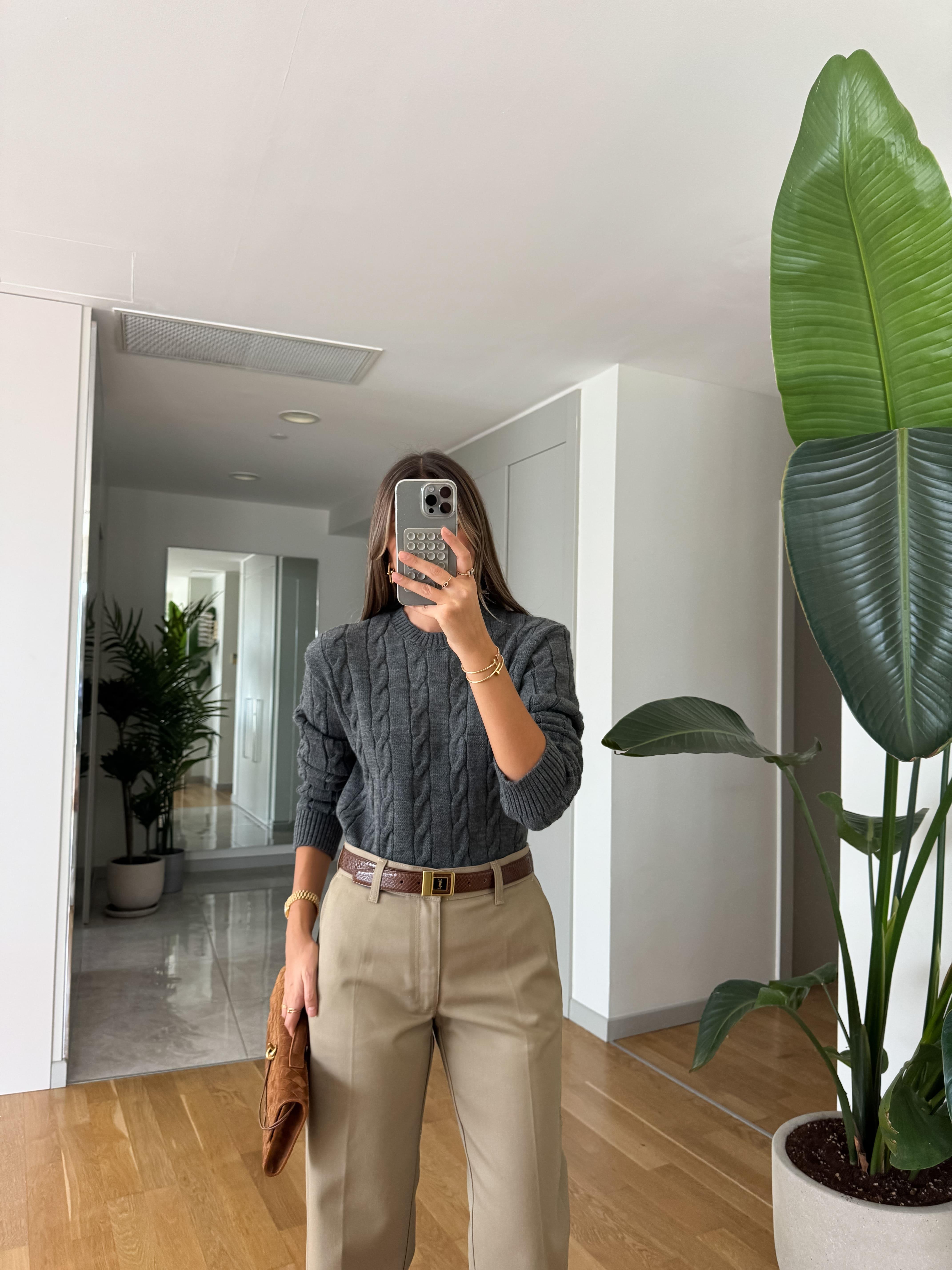 Lauren Saç Örgülü Kazak - Gri (LRN-SC-RGL-KZK-GR)