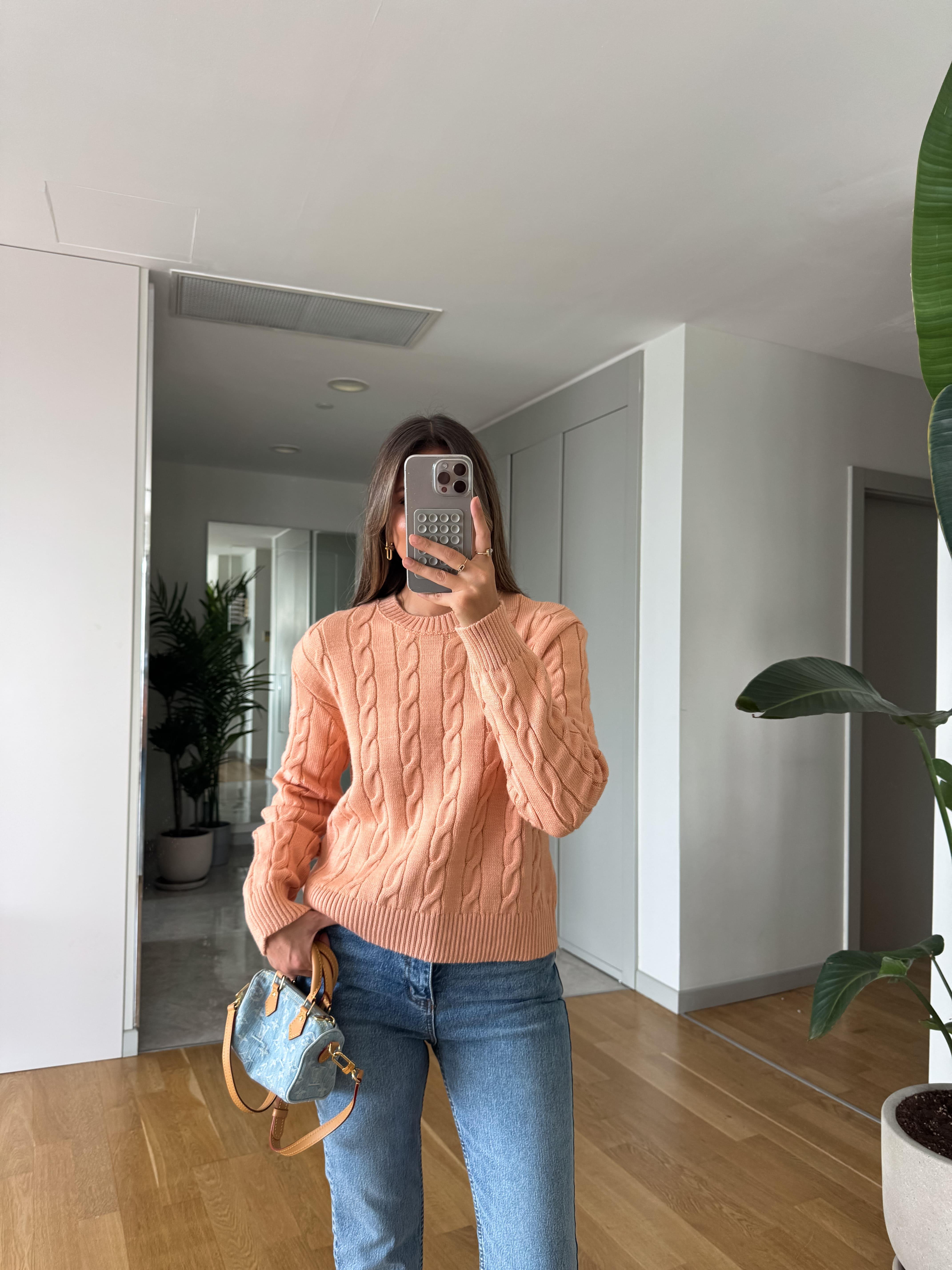 Lauren Saç Örgülü Kazak - Yavruağzı (LRN-SC-RGL-KZK-YVRGZ)