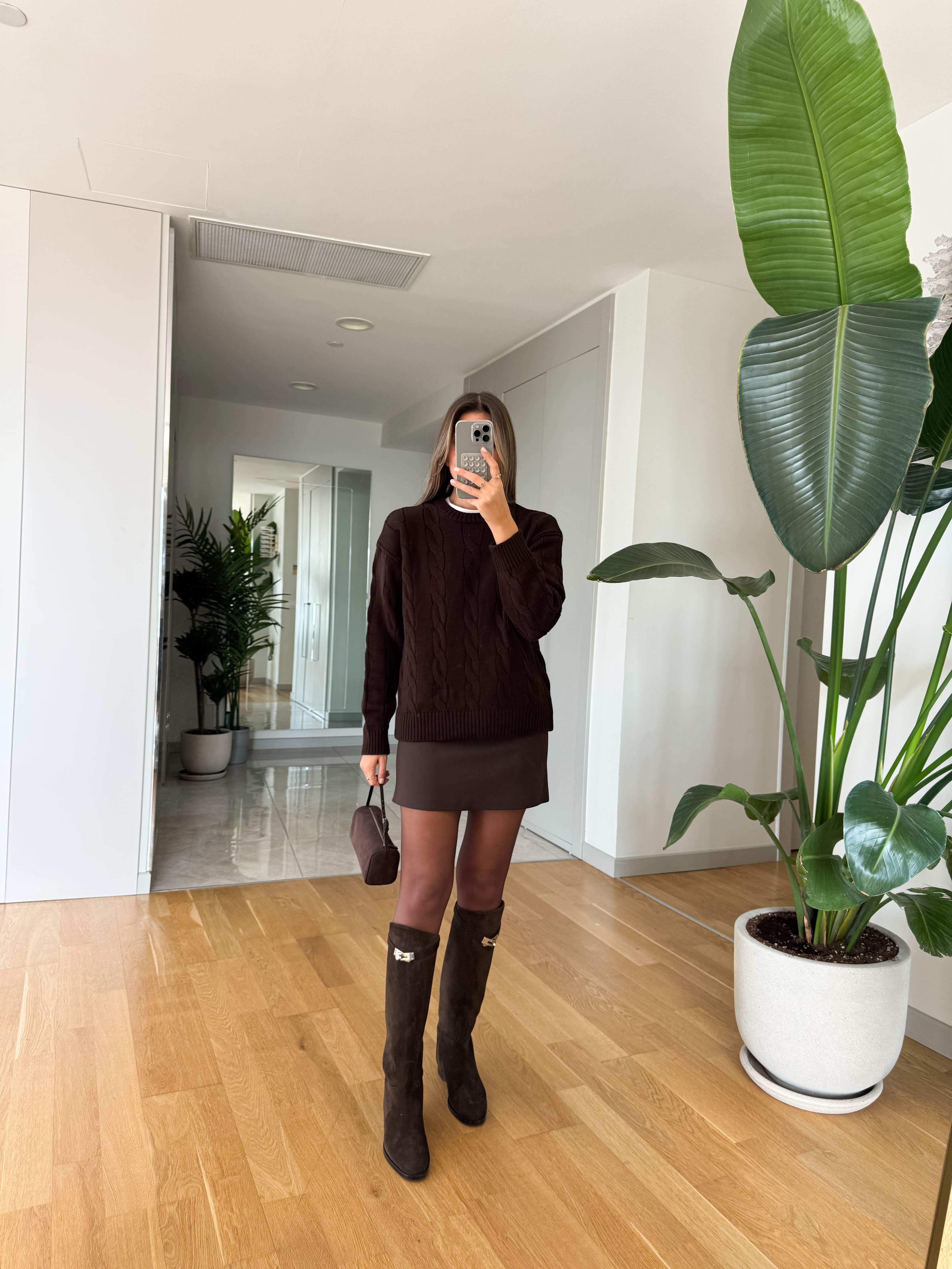 Lero Düz Kesim Mini Etek - Koyu Kahve