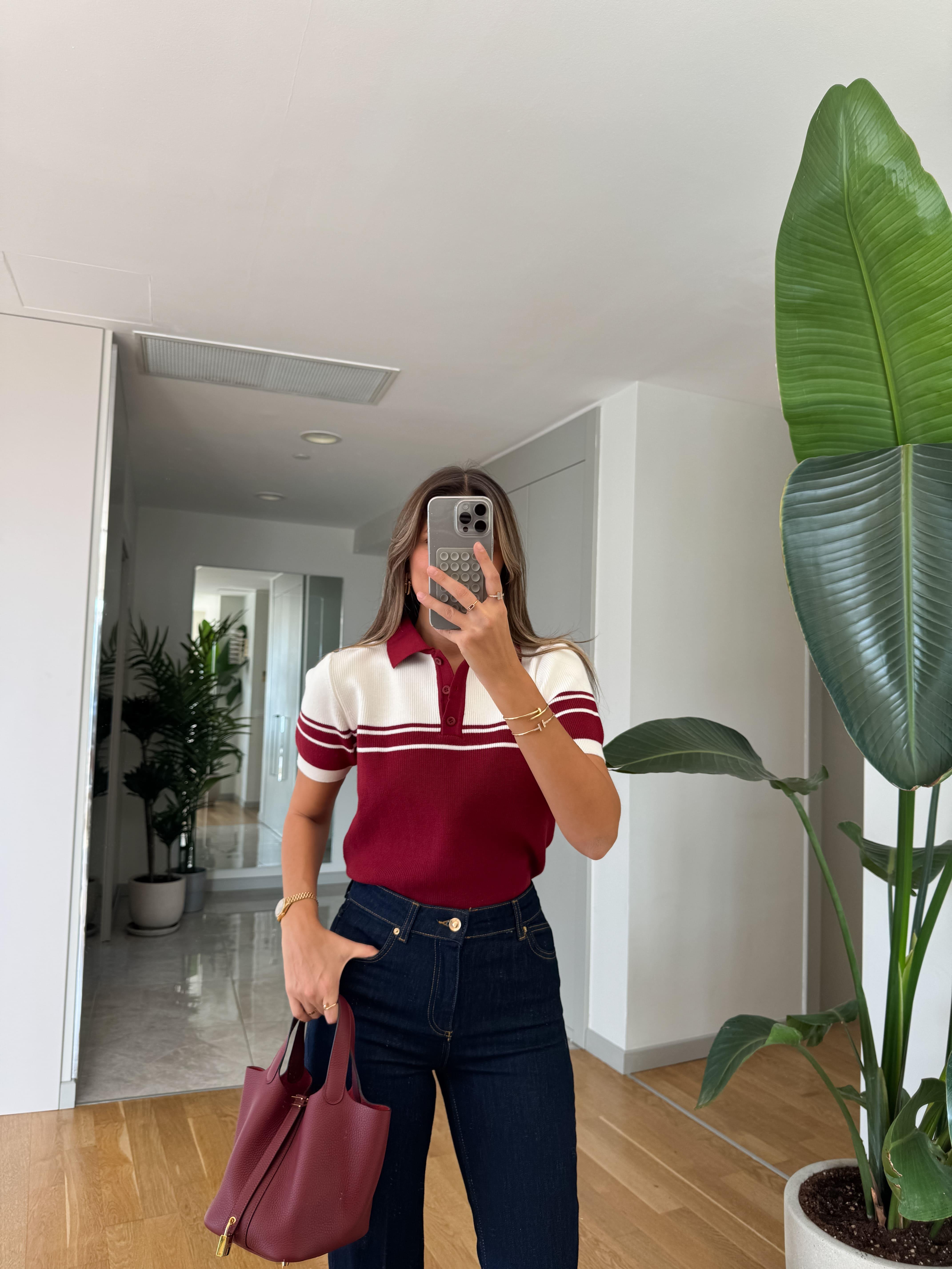 Massi Polo Yaka Çizgili Triko - Bordo (MSS-PL-YK-CZGL-TRK-BRD)