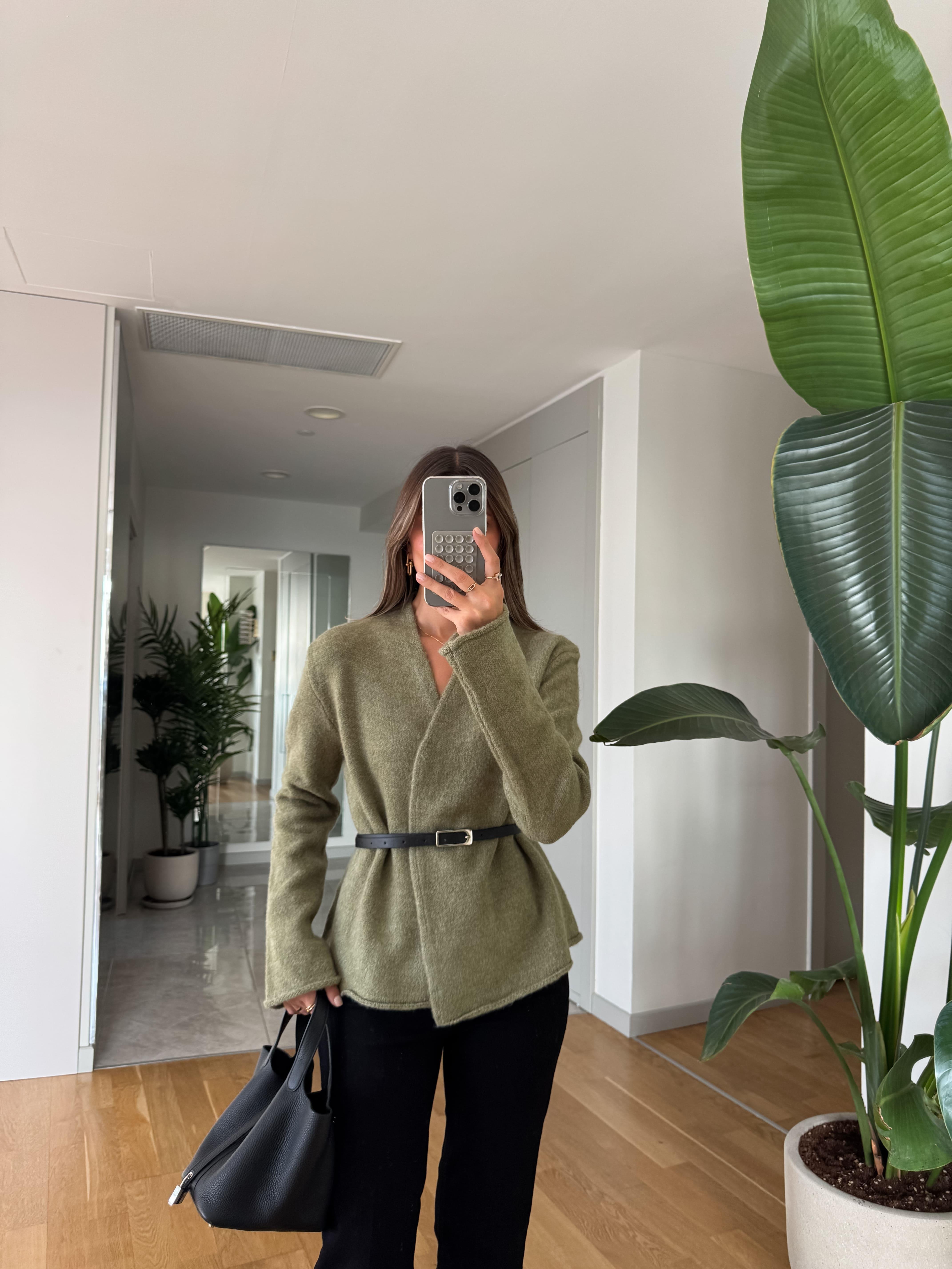 Maxim Kemerli Kruvaze Hırka - Çağla Yeşili (MXM-KSM-KRVZ-HRK-CGL-YSL)