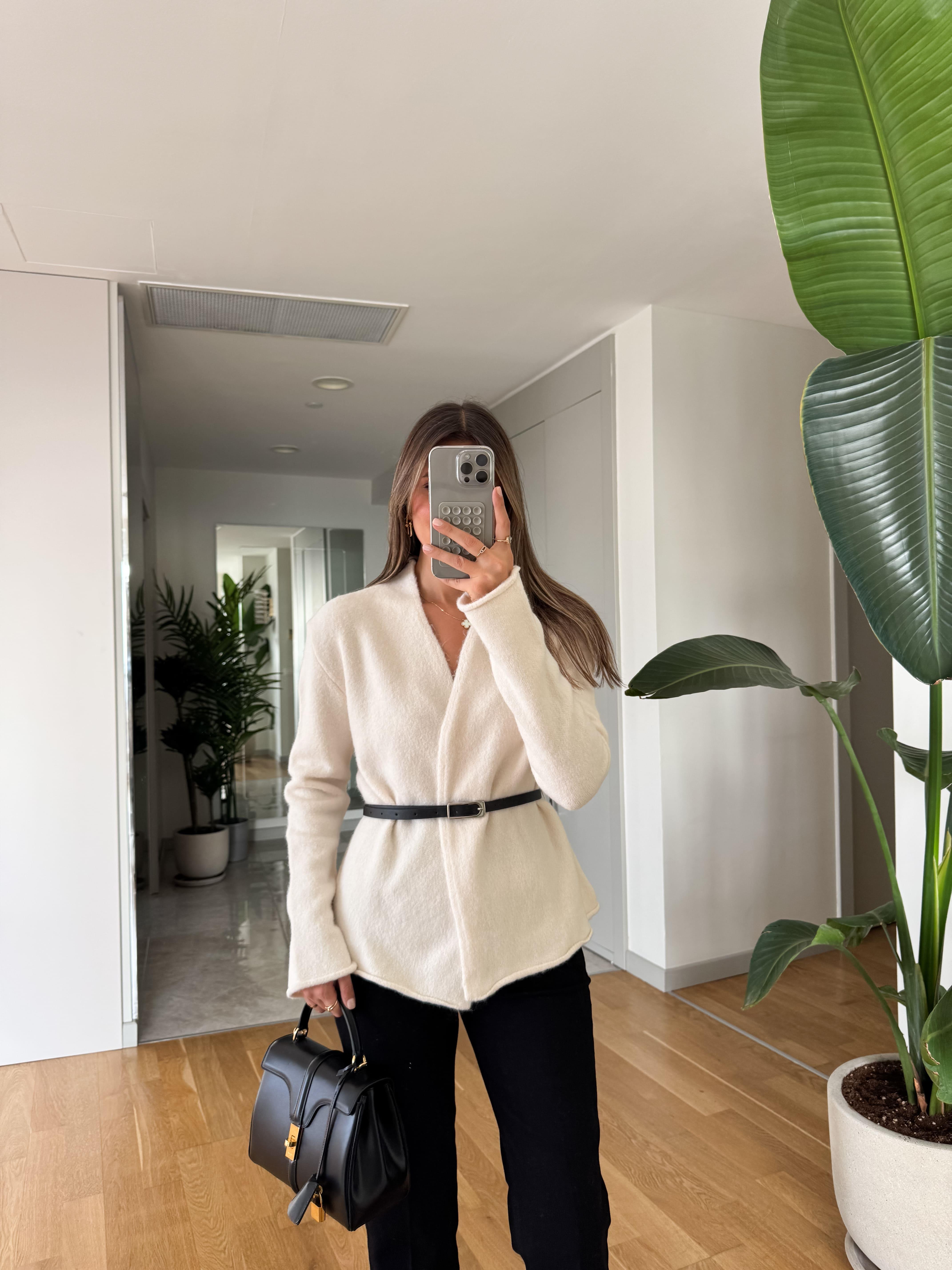 Maxim Kemerli Kruvaze Hırka - Ekru (MXM-KSM-KRVZ-HRK-KR)