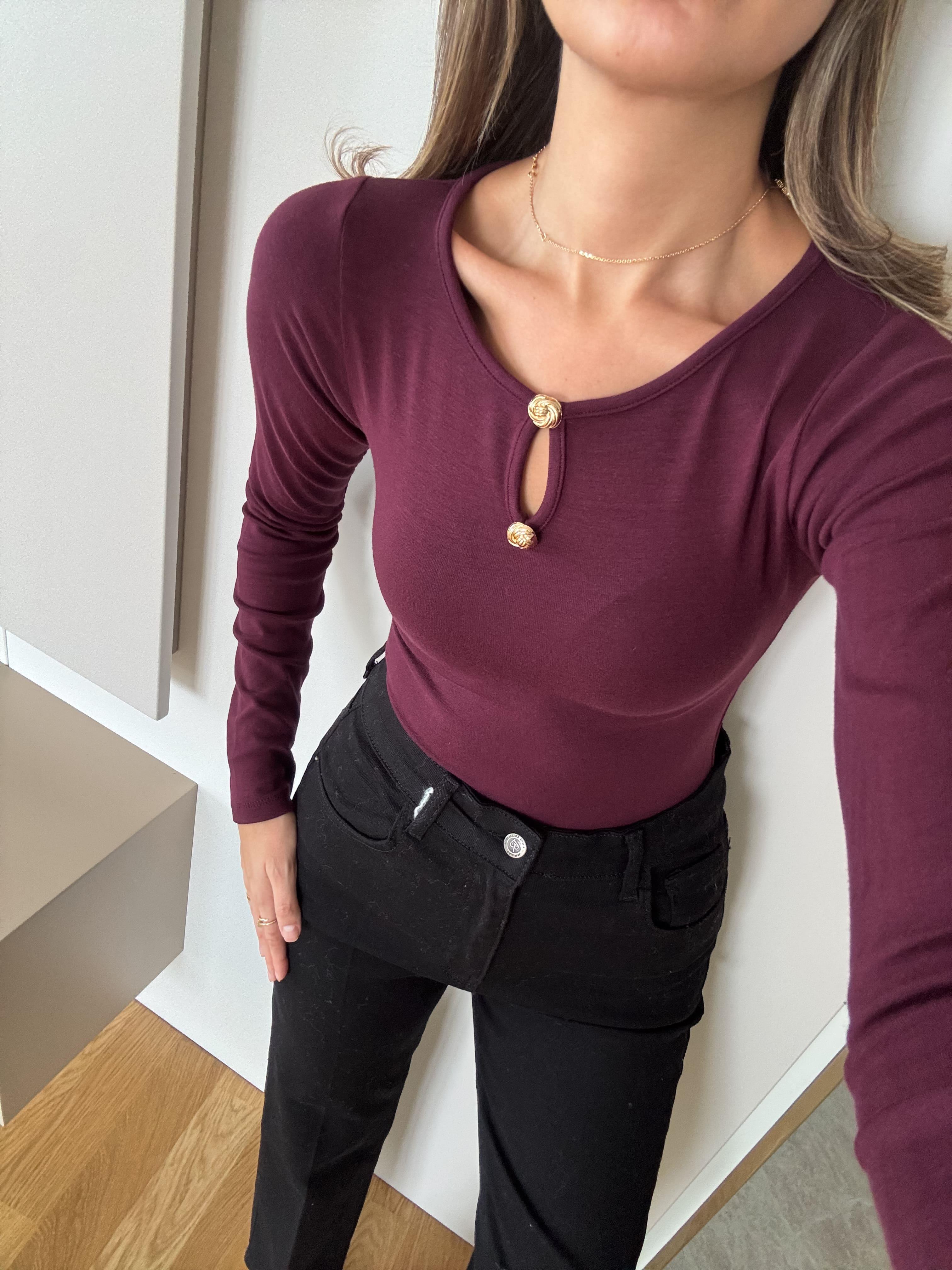 Pearl Gold Düğmeli Bluz - Mürdüm (PRLY-GLD-DGML-BLZ-MRDM)