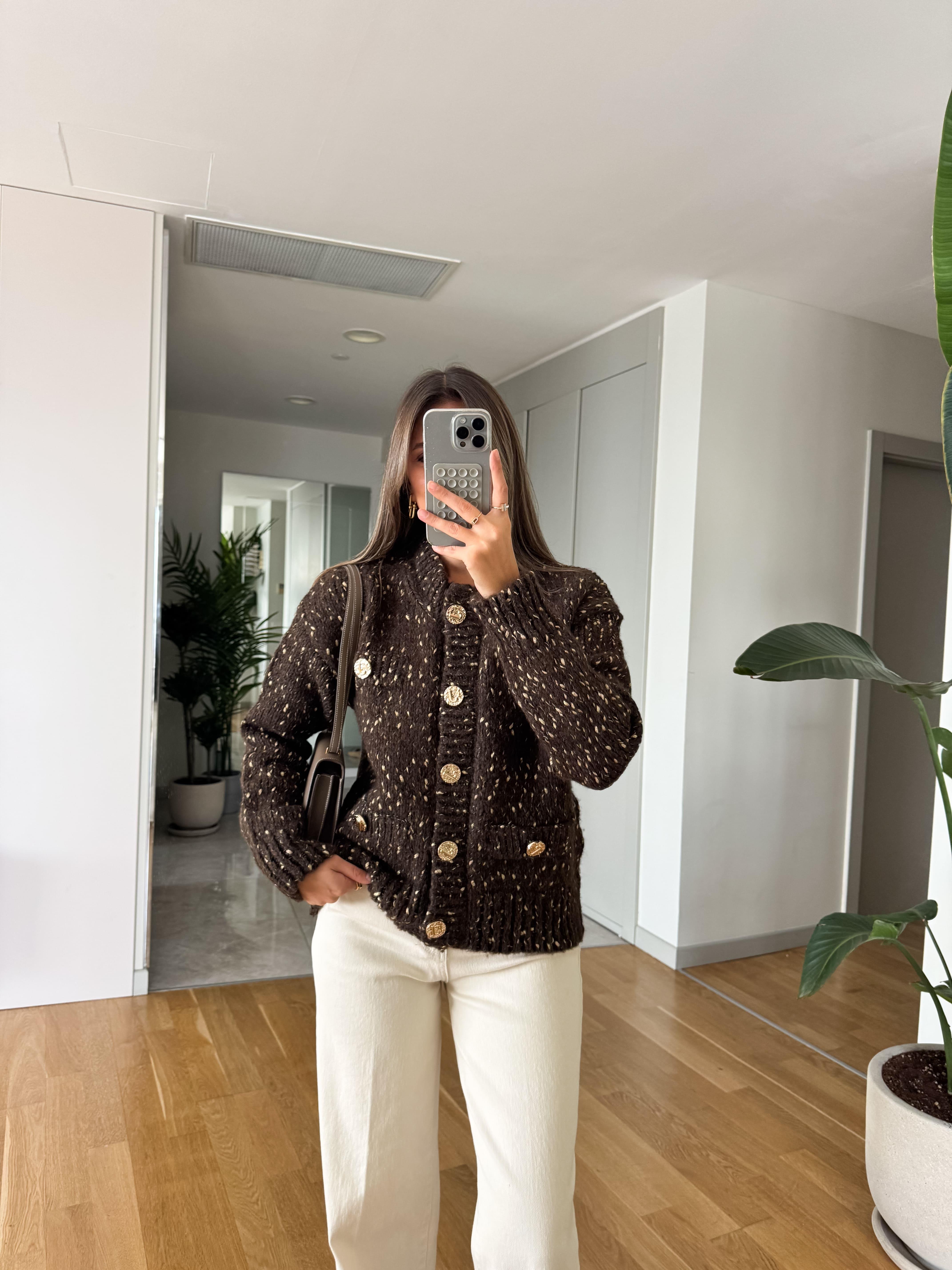 Premium Gold Düğmeli Hırka Ceket - Kahve