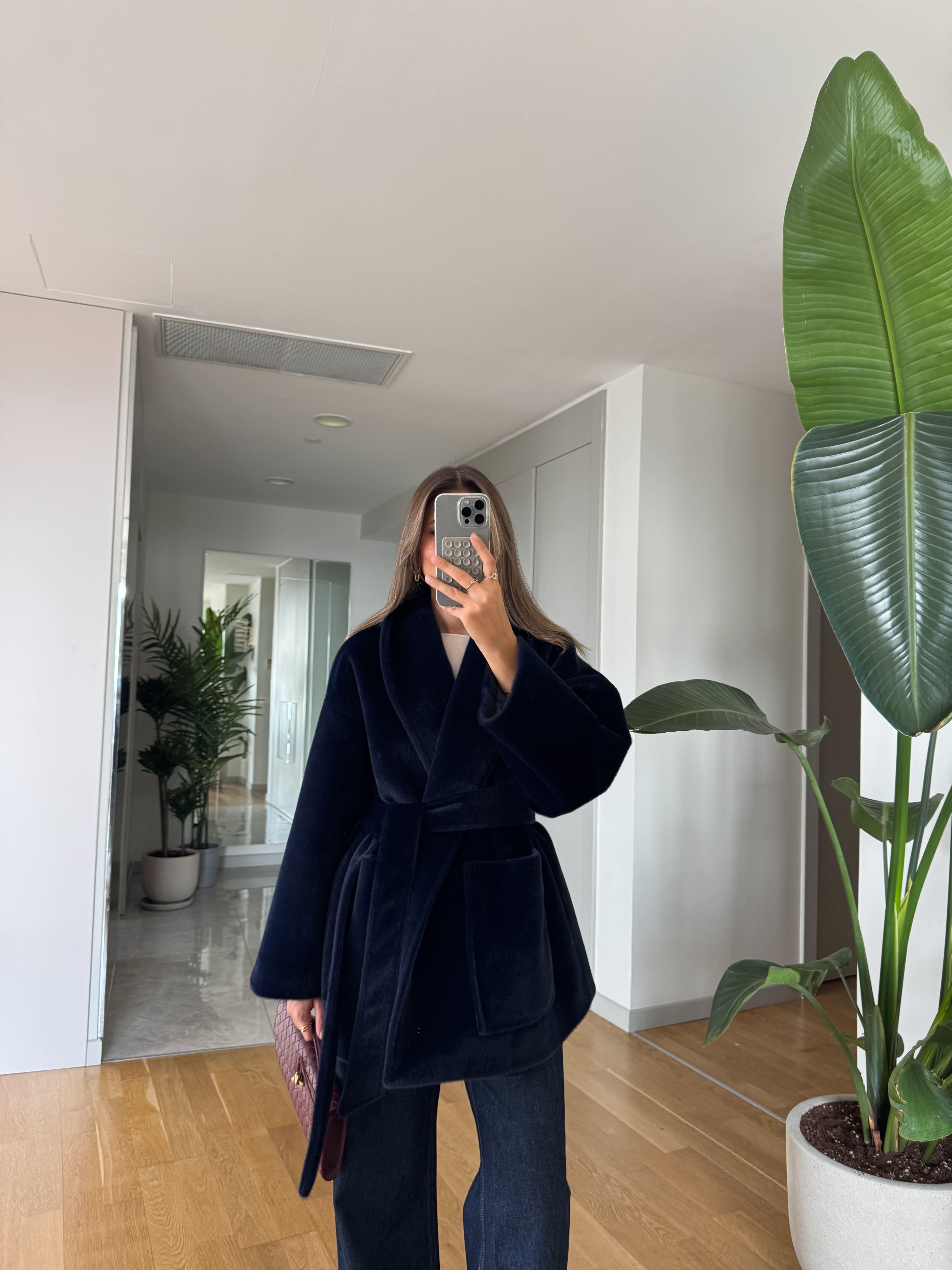 Premium Kuşaklı Cepli Kaban - Lacivert (PRMM-KSKL-CPL-KBN-LCVRT)