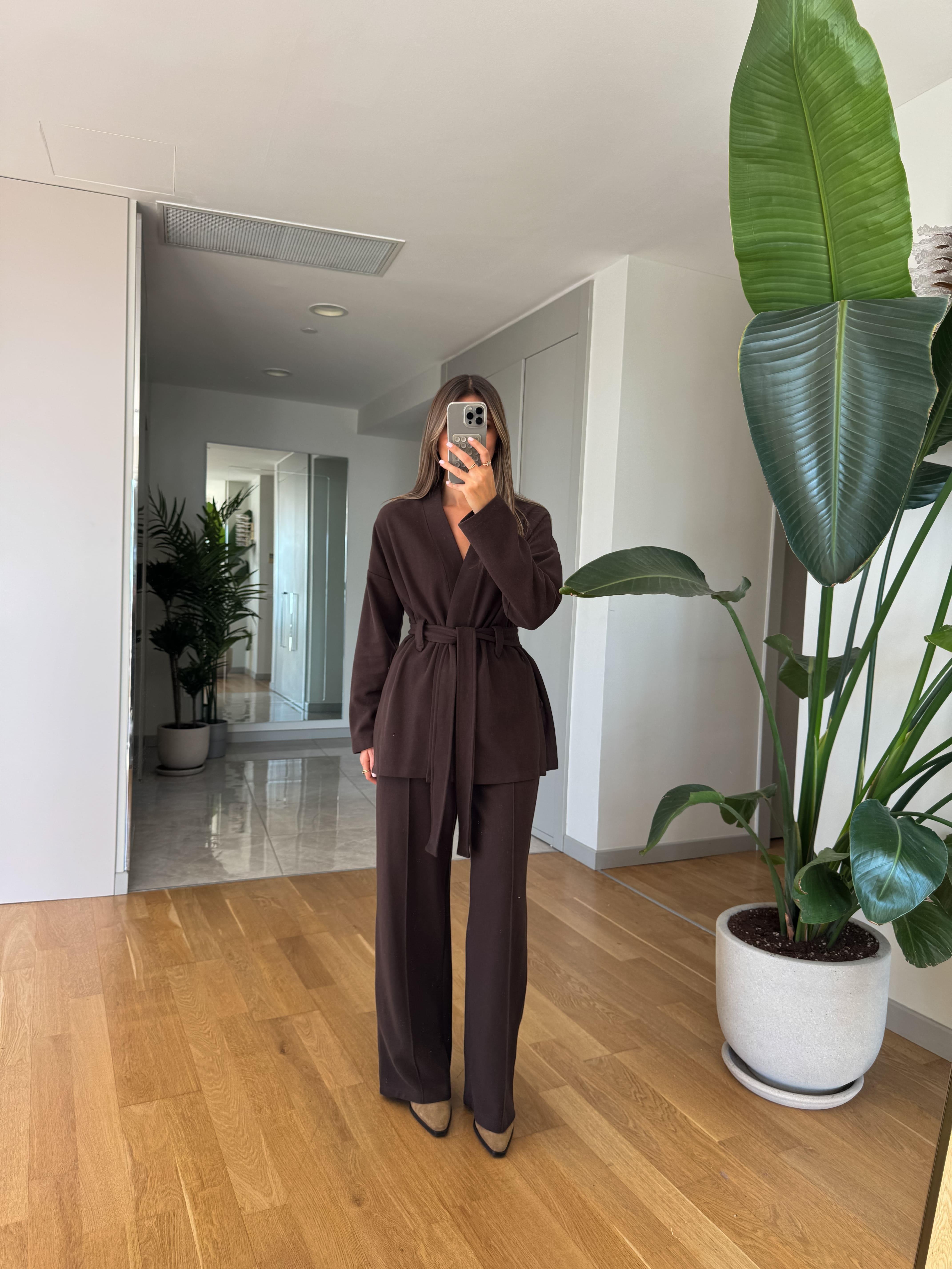 Selanik Örgü Kuşaklı Takım - Kahve