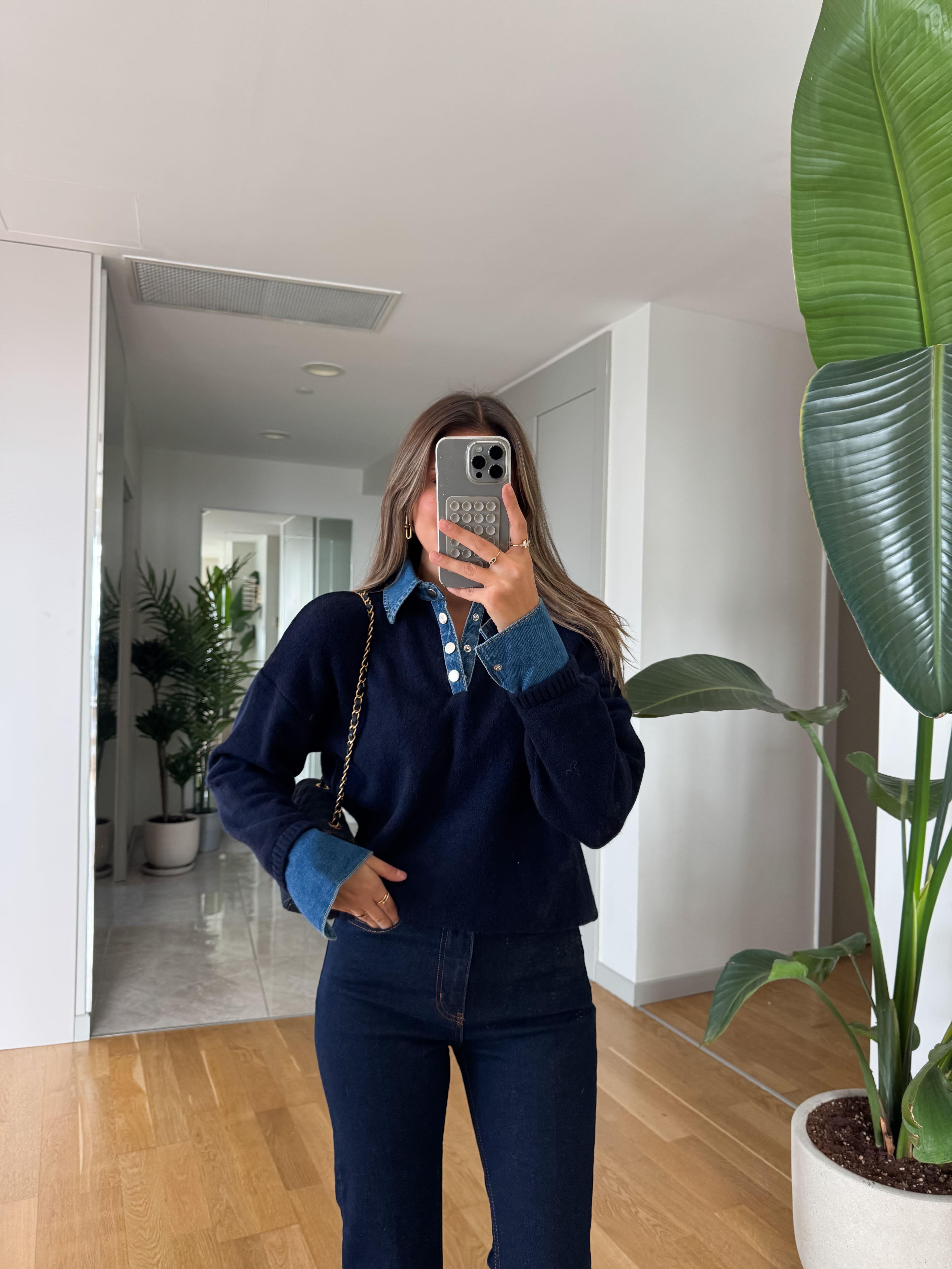Yakası Denim Detaylı Kazak - Lacivert (YKS-DNM-DTYL-KZK-LCVRT)