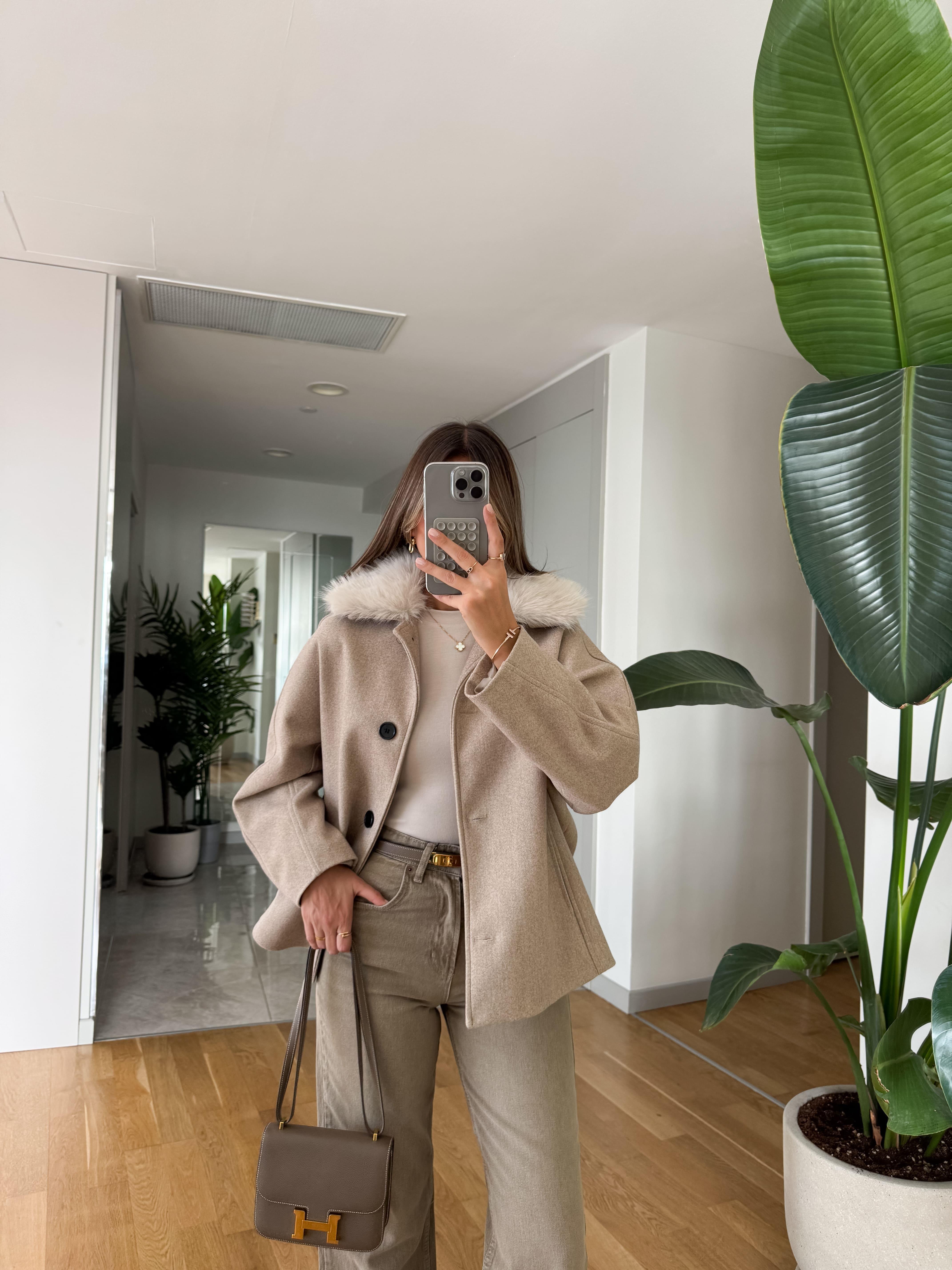 Yakası Kürklü Kaşe Dokulu Ceket -Bej (YKS-KRKL-KS-DKL-CKT-BJ)