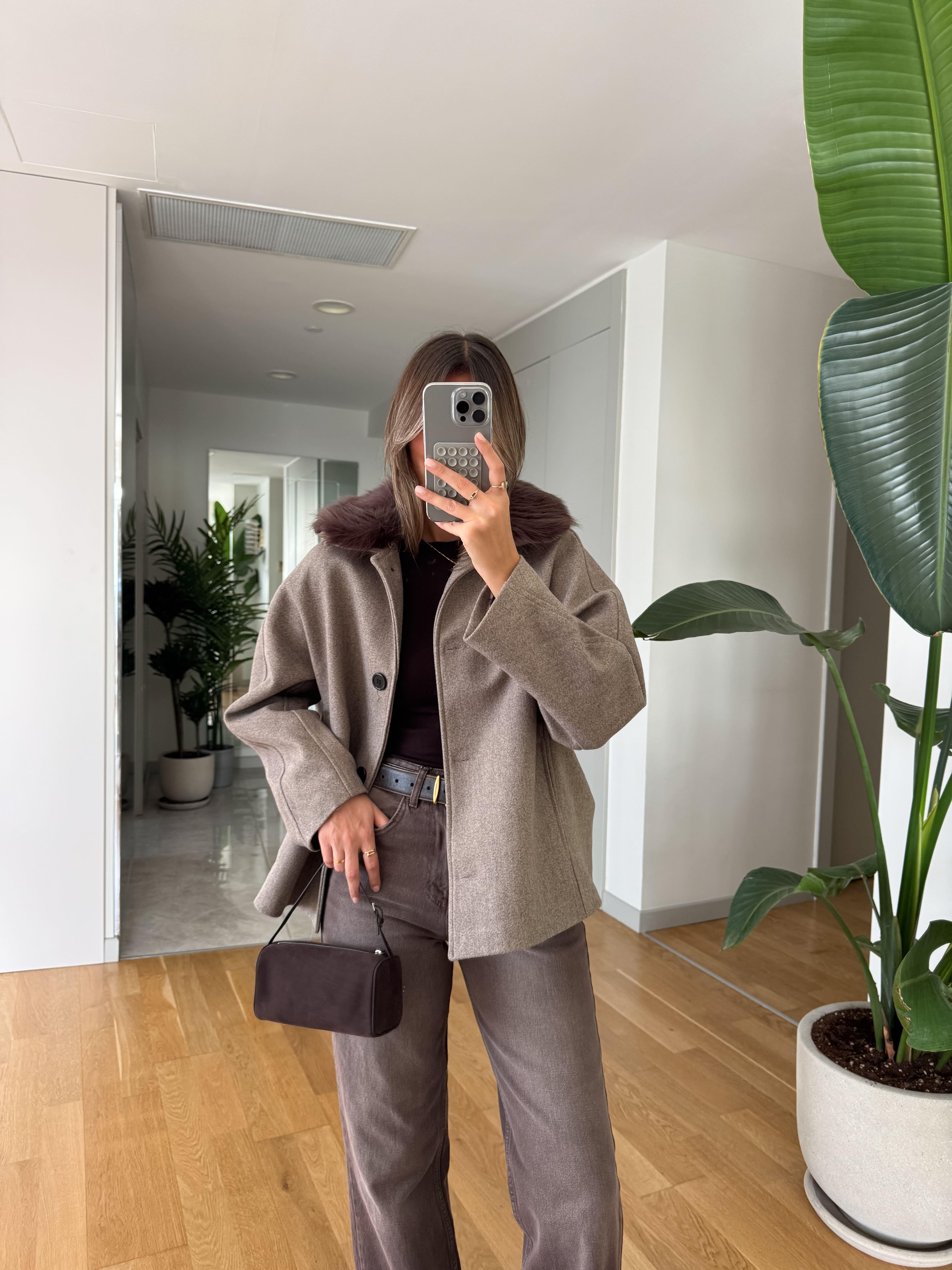 Yakası Kürklü Kaşe Dokulu Ceket -Vizon (YKS-KRKL-KS-DKL-CKT-VZN)